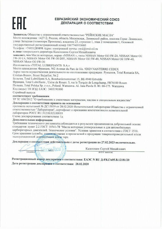 | Отзыв: | Всегда лью только это масло на сервисе Nissan |