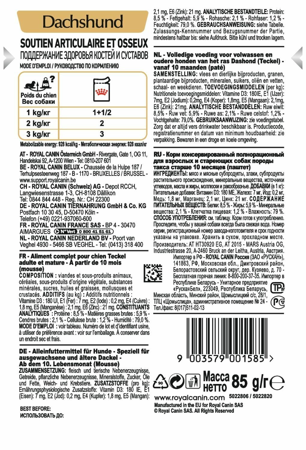 ROYAL CANIN DACHSHUND ADULT для взрослых собак такса 1,5 кг х 4 шт