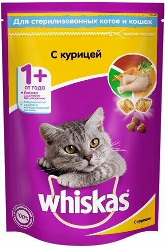 Сухой корм Whiskas для стерилизованных кошек, курица, 350 г