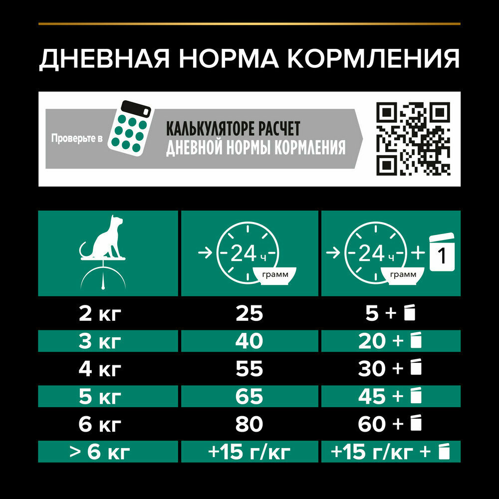 | Дозировка | - вес кошки 2-4 кг - 30-60 граммов - вес кошки 4-6 кг - 60-90 граммов - вес кошки 6-8 кг - 90-120 граммов |
