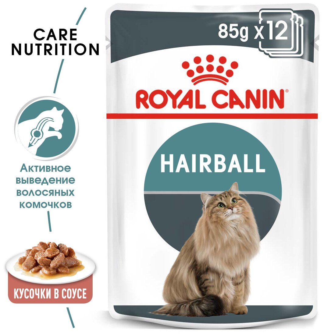Влажный корм для кошек Royal Canin Hairball для вывода шерсти, (кусочки в соусе) 12 шт. х 85 г.