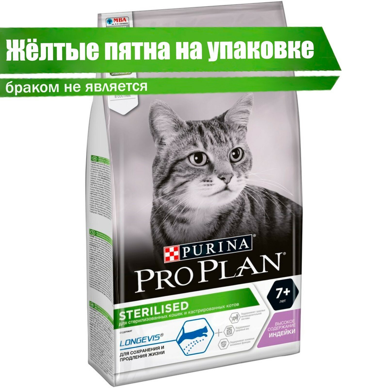 Сухой корм PRO PLAN® Sterilised Senior LONGEVIS® для стерилизованных кошек старше 7 лет, с высоким содержанием индейки 400 г