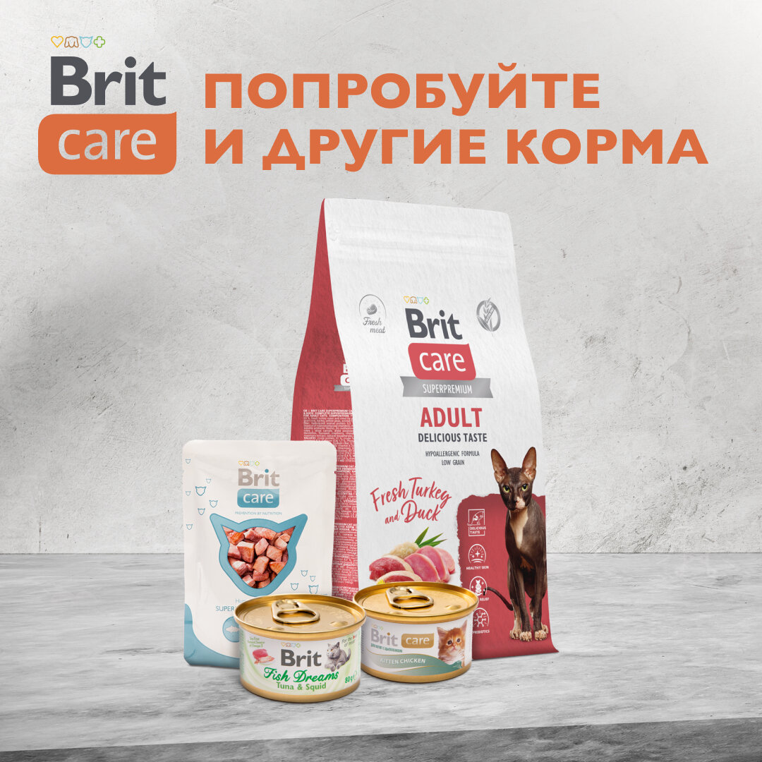 Влажный корм для кошек Brit Care, курица и сыр,упаковка 24 шт х 80 г