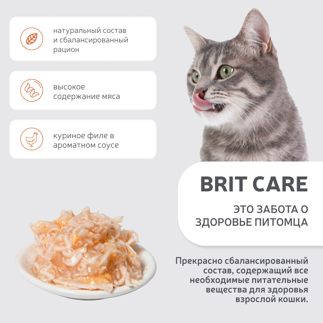 Влажный корм для кошек Brit Care, с курицей 12 шт. х 80 г (кусочки в соусе)
