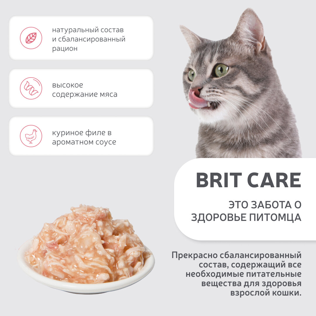 Сохранитькорм для кошек Brit Care, с курицей, с уткой 24 шт. х 80 г (кусочки в желе) интересное: