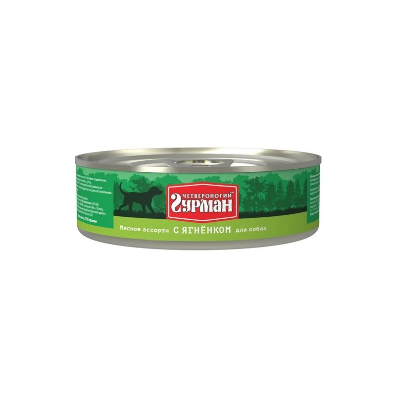 Четвероногий Гурман влажный корм для взрослых собак всех пород, ягненок натуральный в желе 340 гр