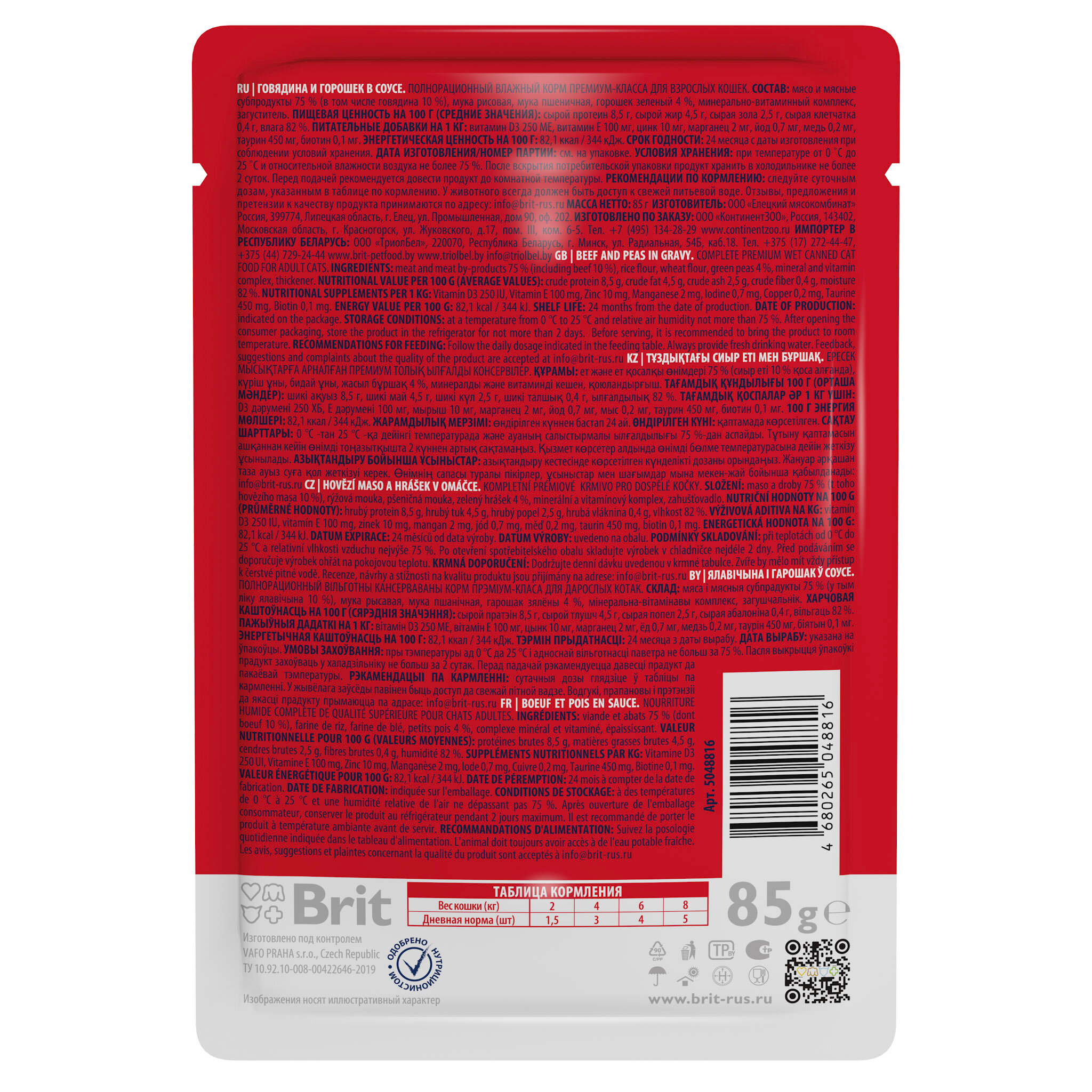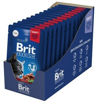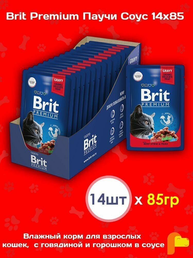 Паучи Брит Премиум для кошек Говядина и Горошек в соусе (цена за упаковку) 85г х 14шт