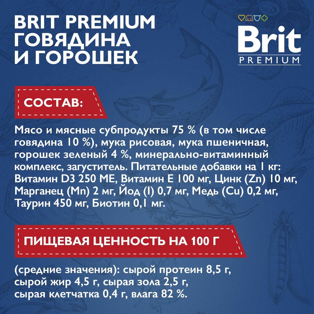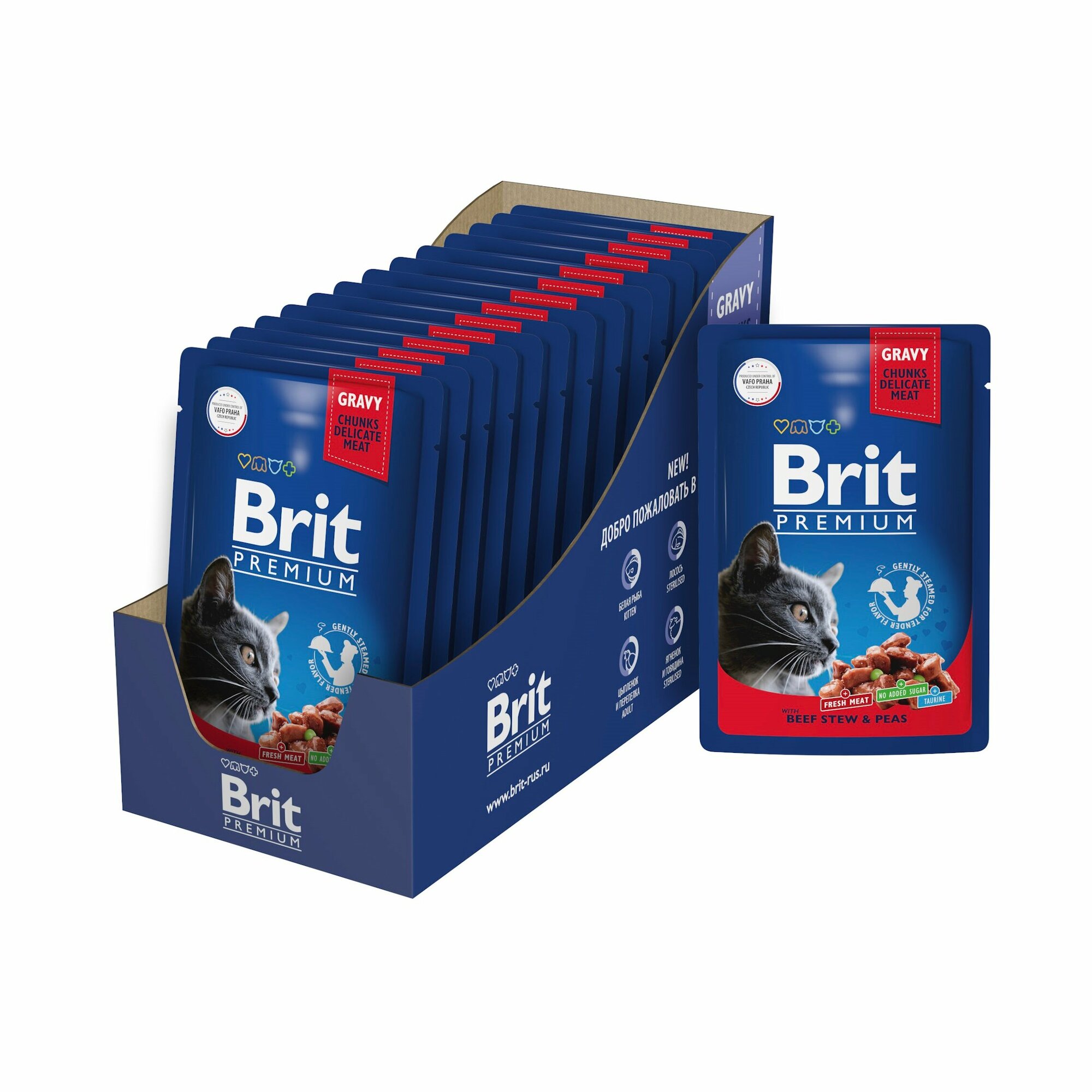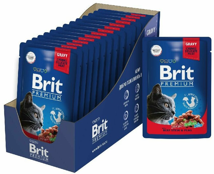 Корм Brit Premium Beef Stew & Peas (в соусе) для кошек, говядина и горошек, 85 г x 14 шт