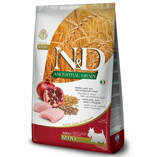 FARMINA DOG N&D ANCESTRAL GRAIN ADULT MINI CHICKEN & POMEGRANATE низкозерновой для взрослых собак маленьких пород с курицей и гранатом (2,5 кг)