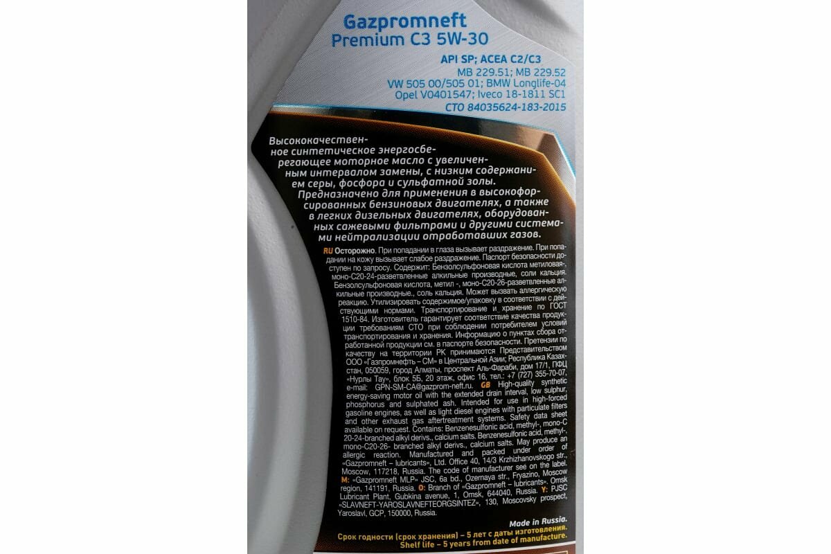 Масло моторное gazpromneft premium c3 5w-30 синтетическое 1 л 253142229