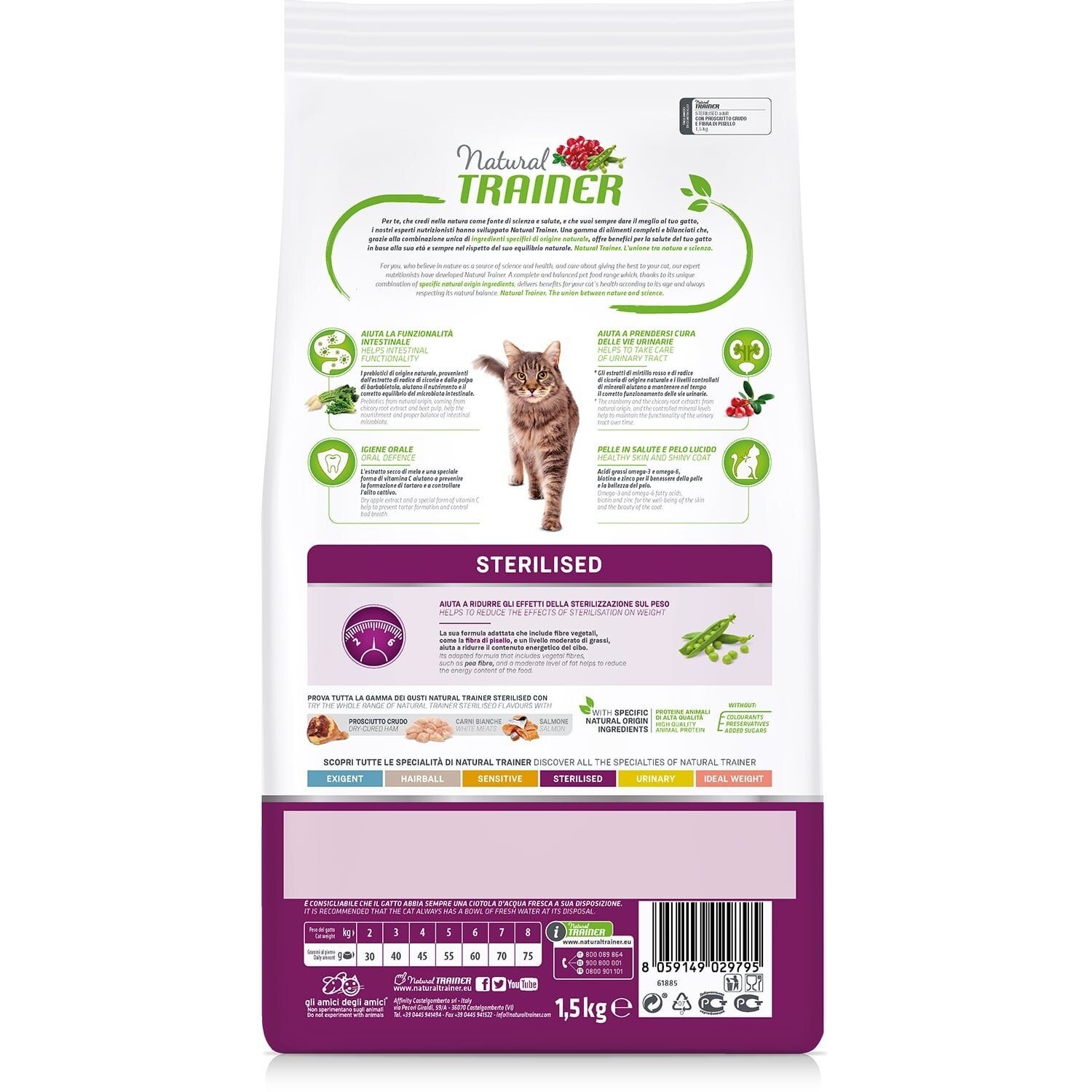 Корм Trainer Natural Cat Adult Sterilised Dry-Cured Ham для стерилизованных кошек, с сыровяленой ветчиной, 1.5 кг