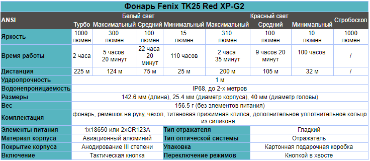 Фонарь Fenix TK25R, TK25Red интересное: