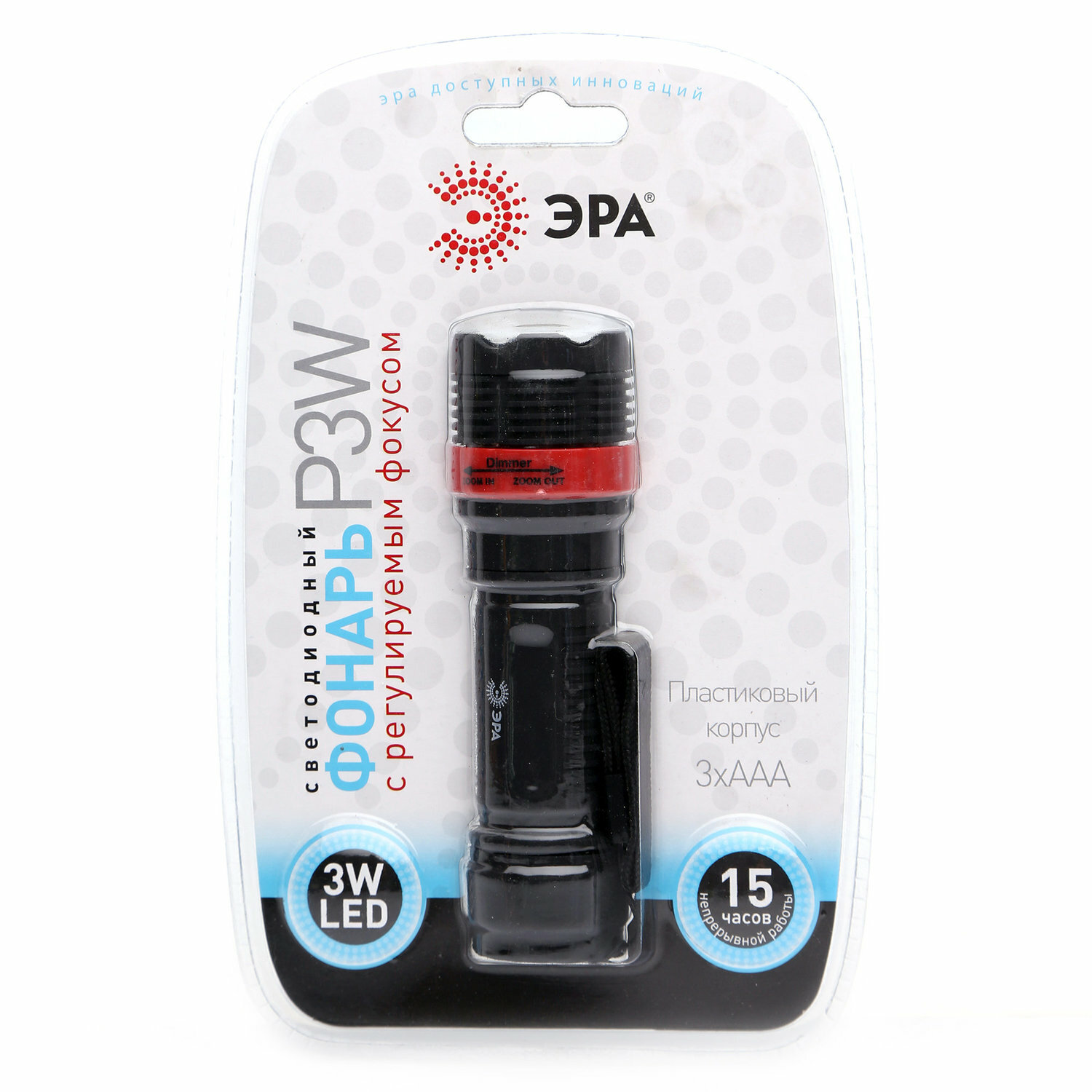 Купить ЭРА P3W !выведено из ассортимента Фонарь 3W LED. ручной регулируемый фокус. пластик. 3xAAA. бл