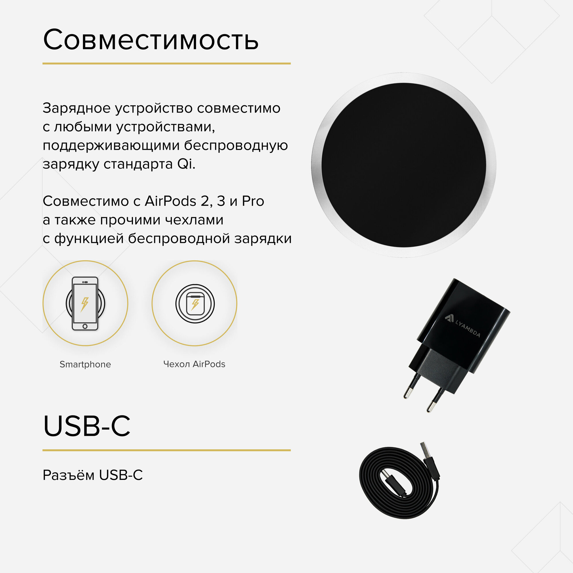 Беспроводное зарядное устройство LYAMBDA LNT1-BK, USB, USB type-C, 2A, черный