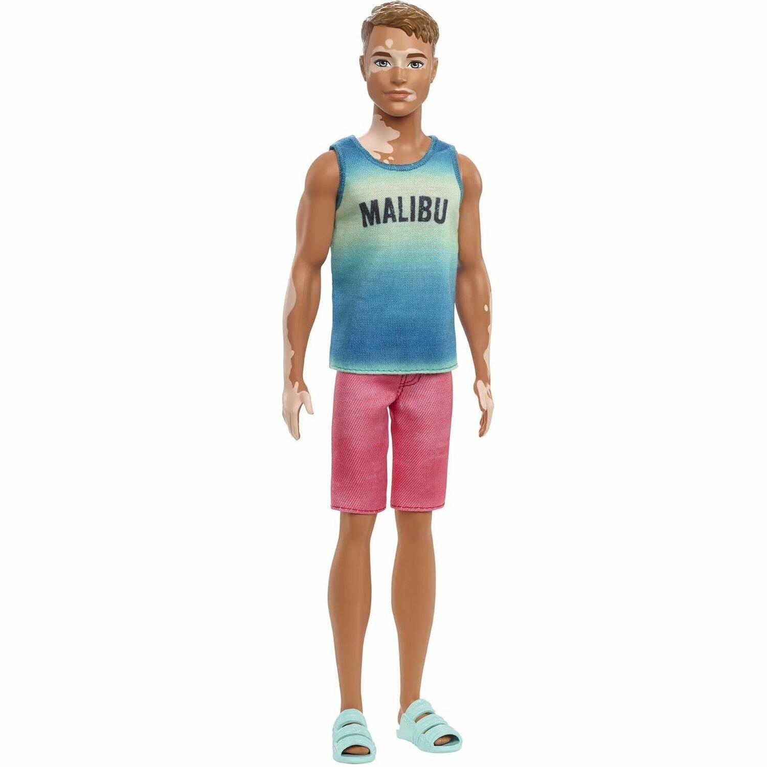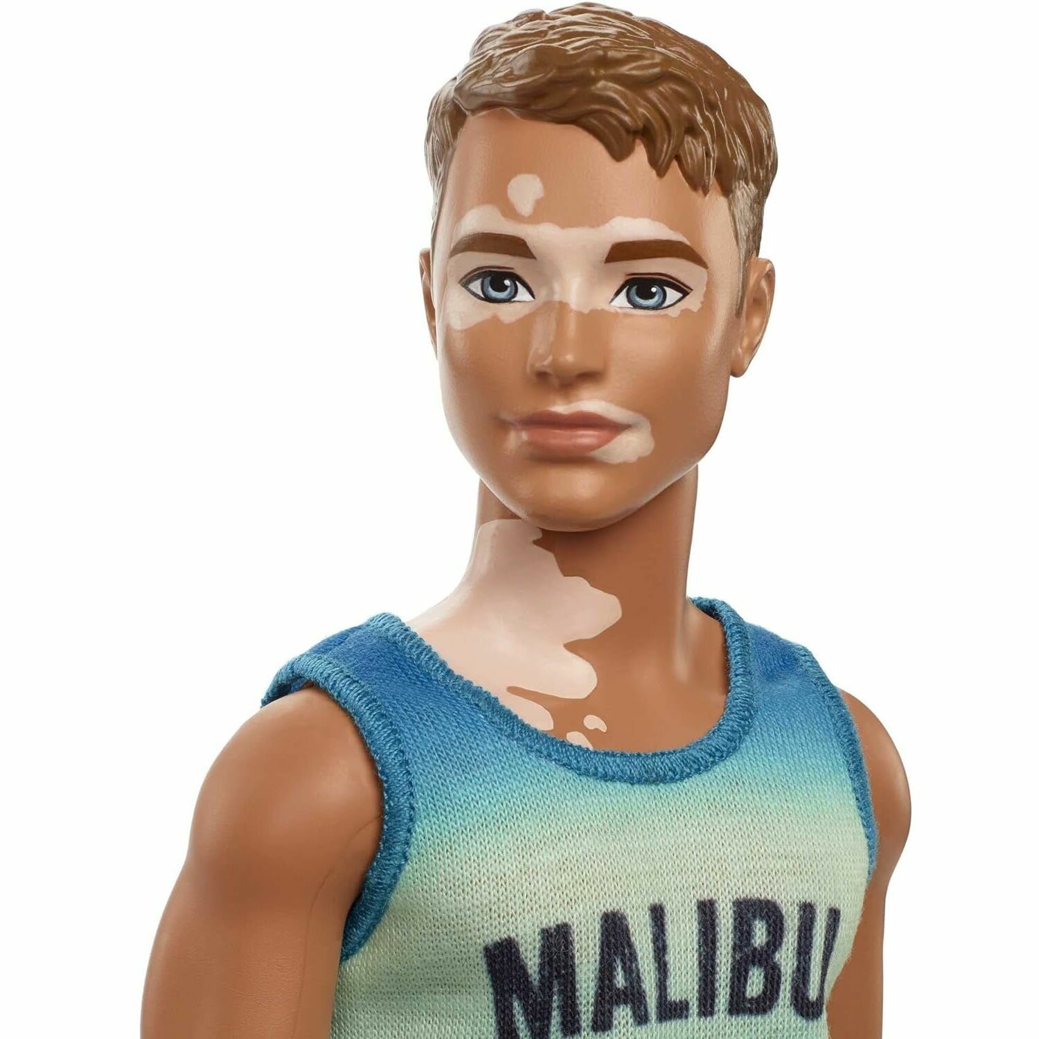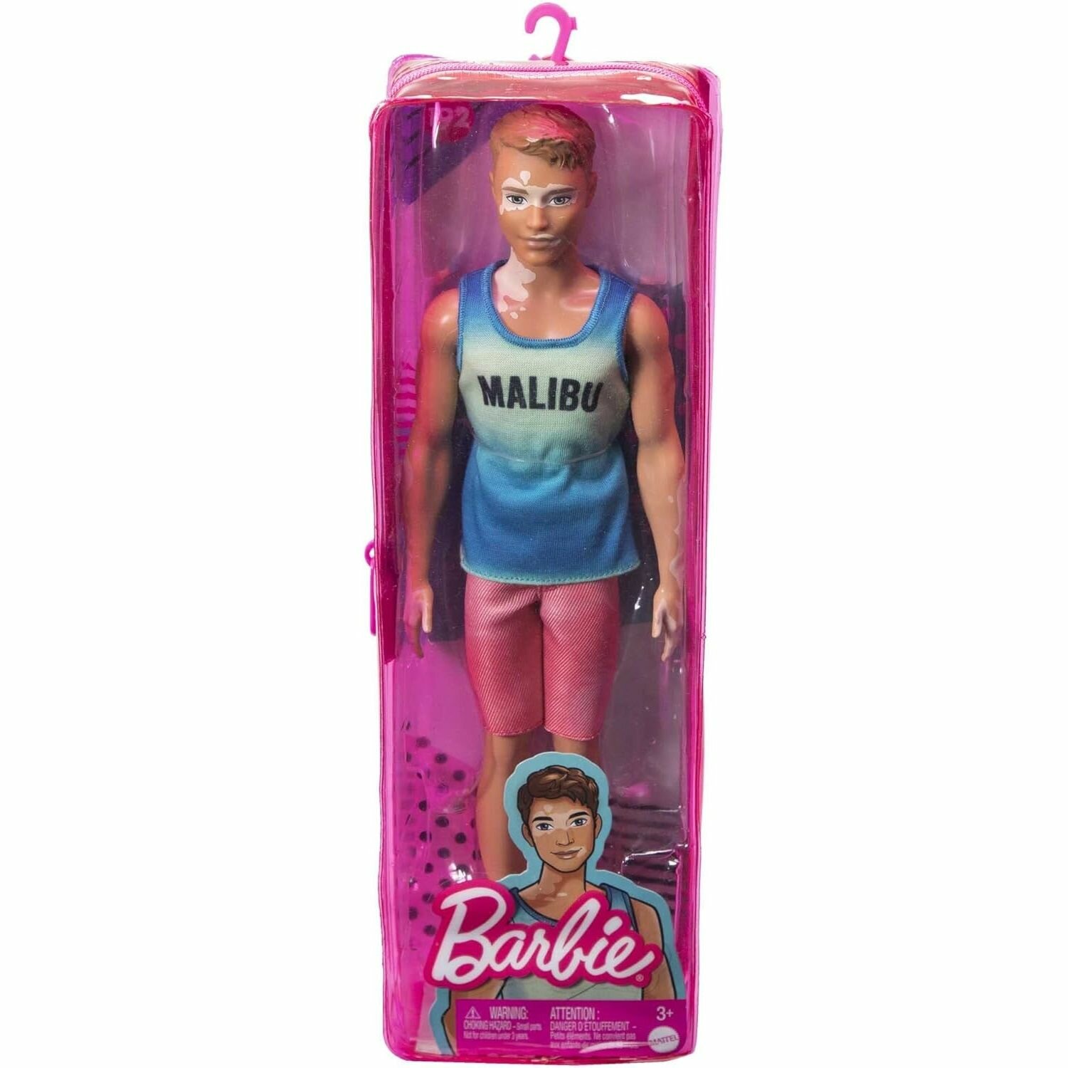 Кукла Кен Barbie Fashionistas витилиго, майка Malibu, красные шорты