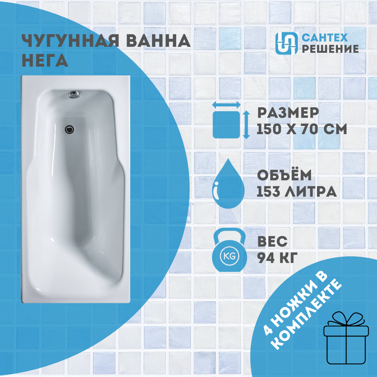 Ванна Универсал Нега 150x70, чугун, глянцевое покрытие, белый интересное: