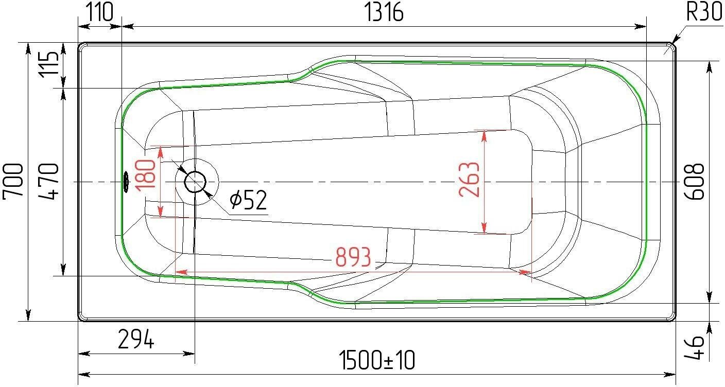 | Минусы: | Узковата в районе слива из-за бортов - для длины 1500 очень заметно, но привыкается. Не хватает размерностей типа 1600х750.
