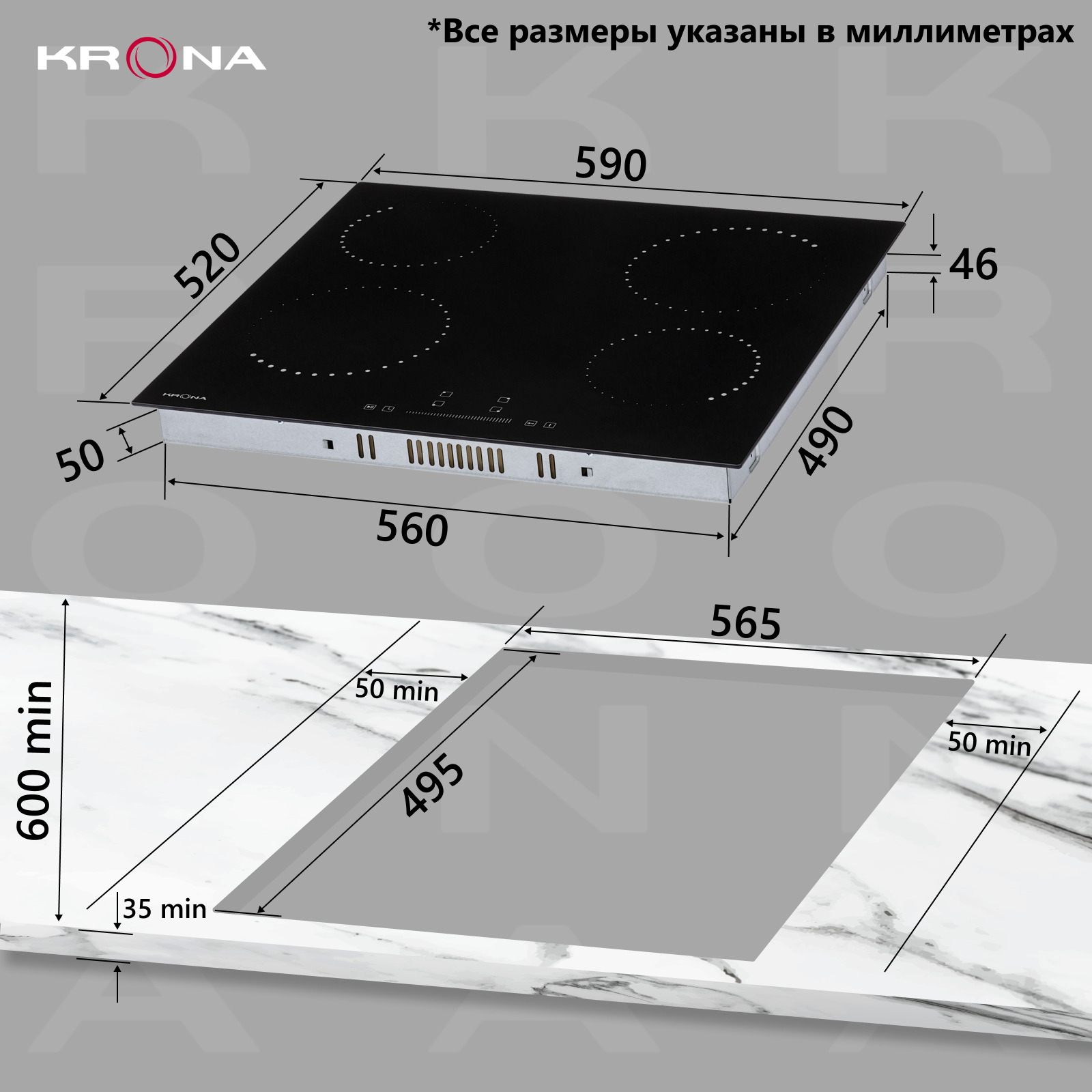 Встраиваемая независимая электрическаяя поверхность Krona CORTO 60 BL