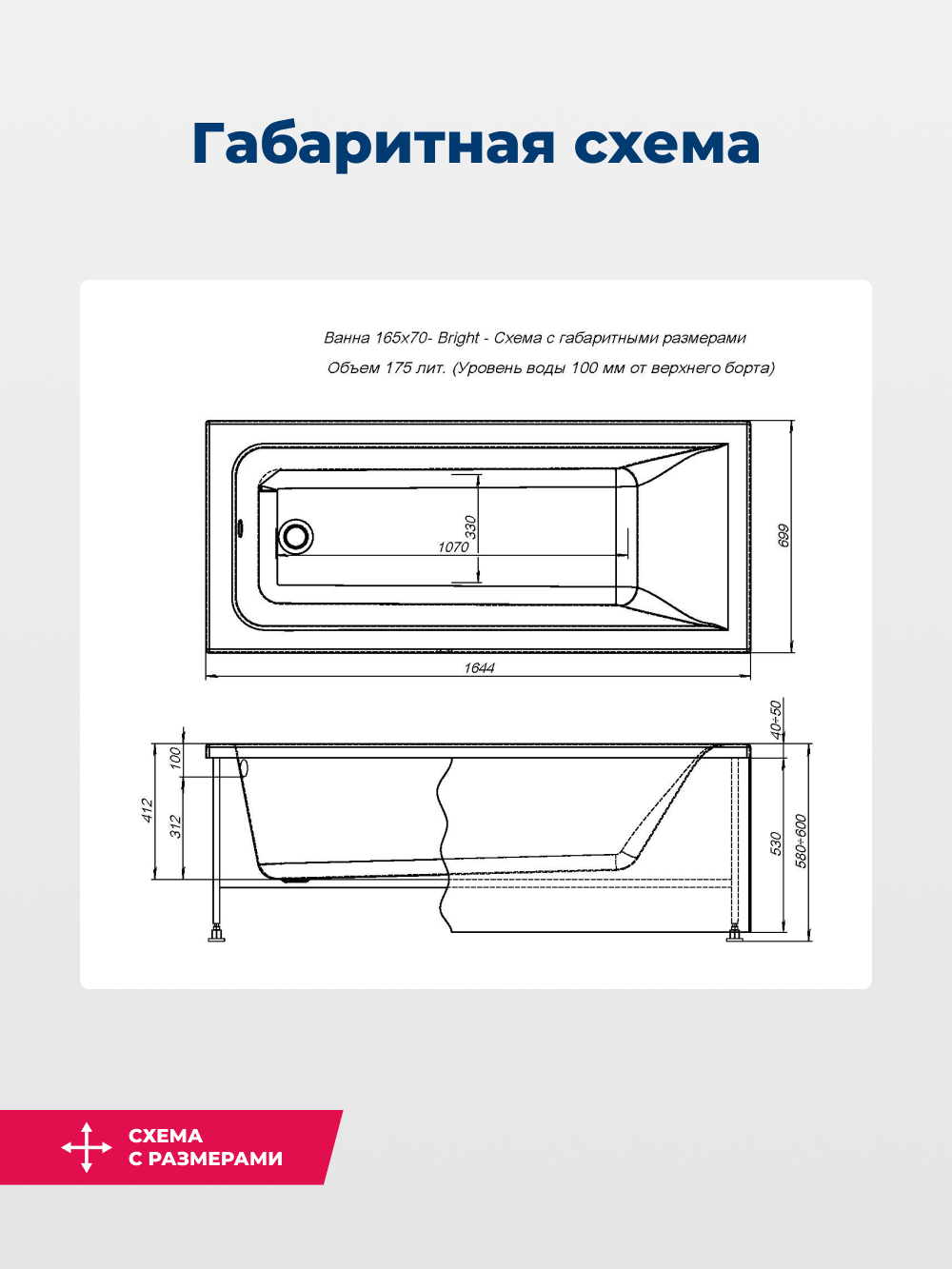 Ванна акриловая Aquanet Bright 230255 165x70 с каркасом