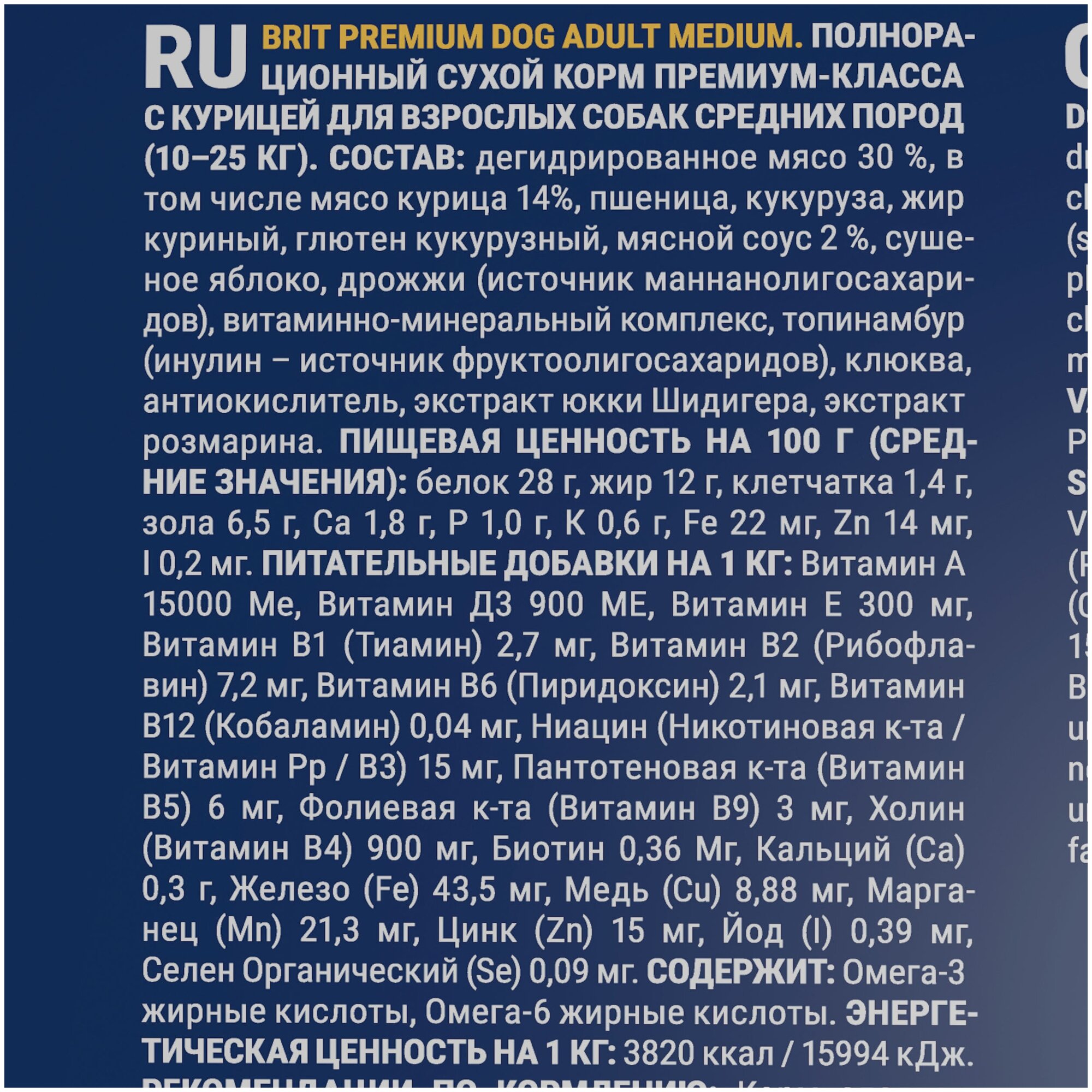 BRIT (Брит) Premium Dog Adult Medium Корм сух. д/взрослых собак средних пород с курицей 15 кг