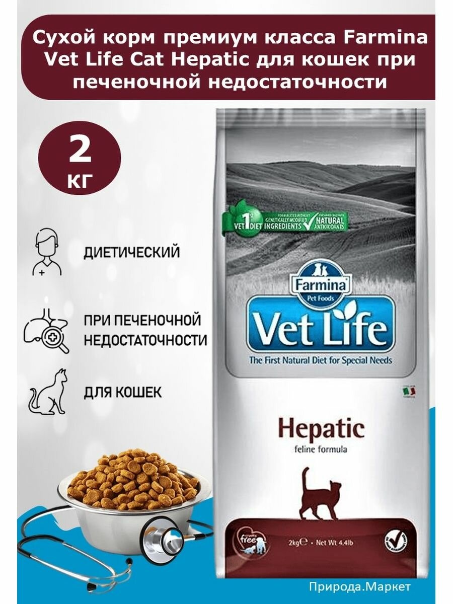 Vet Life Cat Hepatic корм для кошек при хронической печеночной недостаточности Диетический, 2 кг.