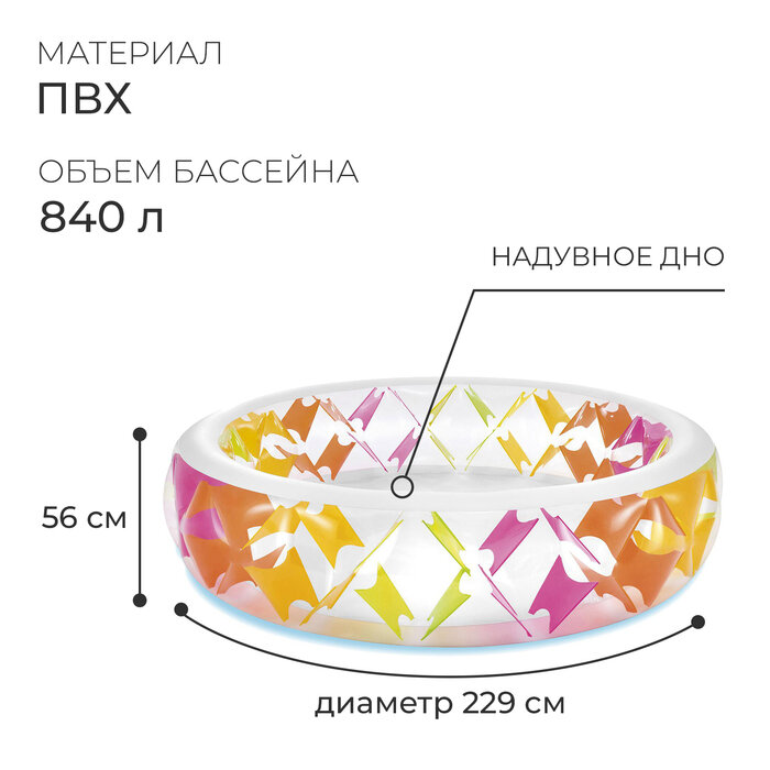 СохранитьIntex, 56494, Детский надувной бассейн 229х56см с цветными вставками, надувное дно, 840л, от 6 лет интересное: