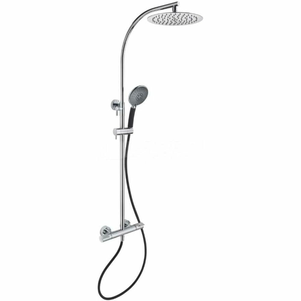 Душевая система / душевая стойка Teka Healthy Chrome Black с термостатическим смесителем для душа / в душевую, хром с черными шлангом и лейкой (5 режимов) (182310200)