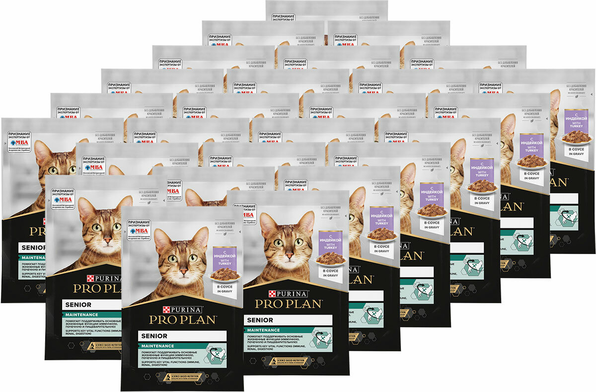 Корм для кошек PRO PLAN Senior для пожилых, с индейкой в соусе пауч 85г (упаковка - 26 шт)