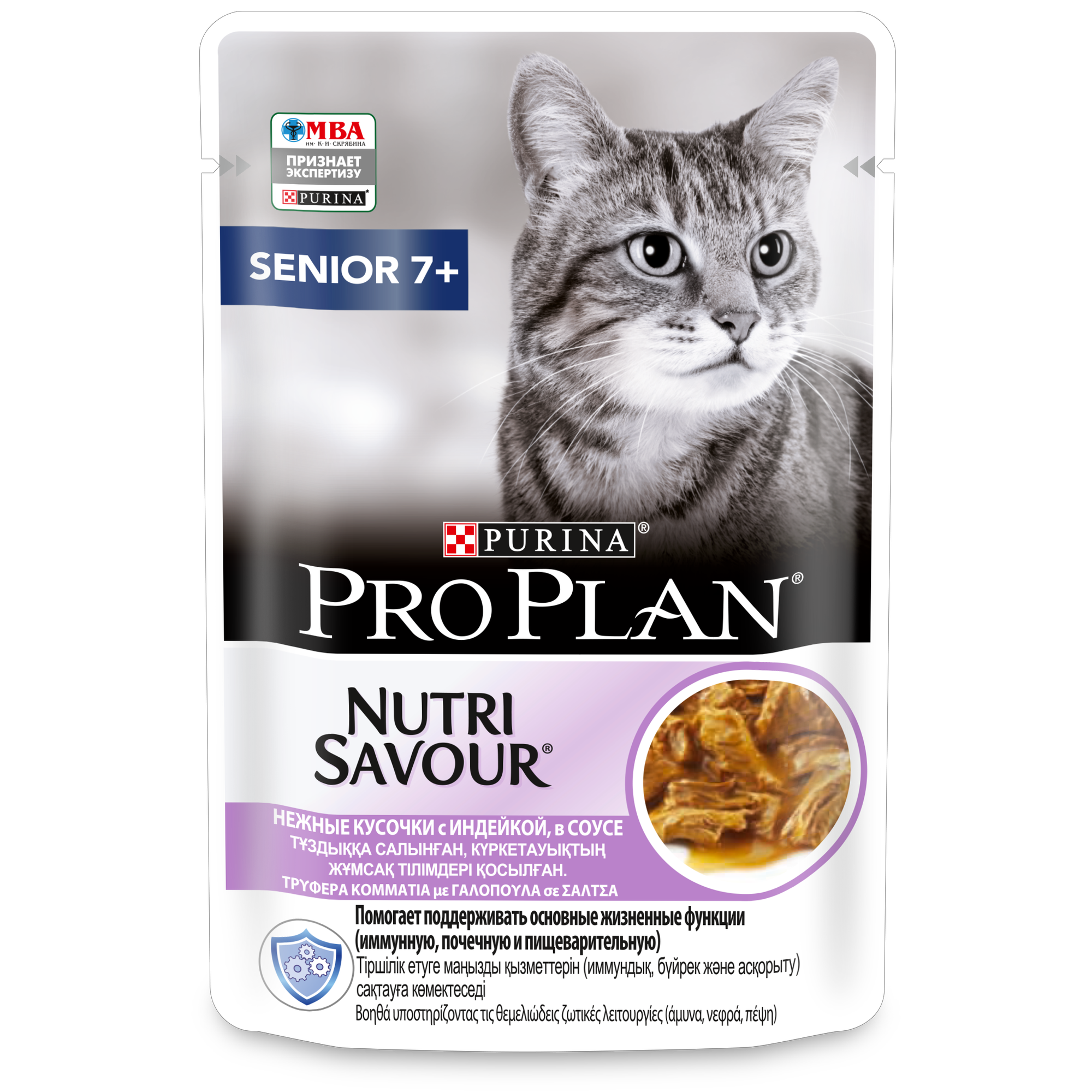 Pro Plan влажный корм для взрослых кошек старше 7 лет, нежные кусочки с индейкой, в соусе, 85 г, 2 шт