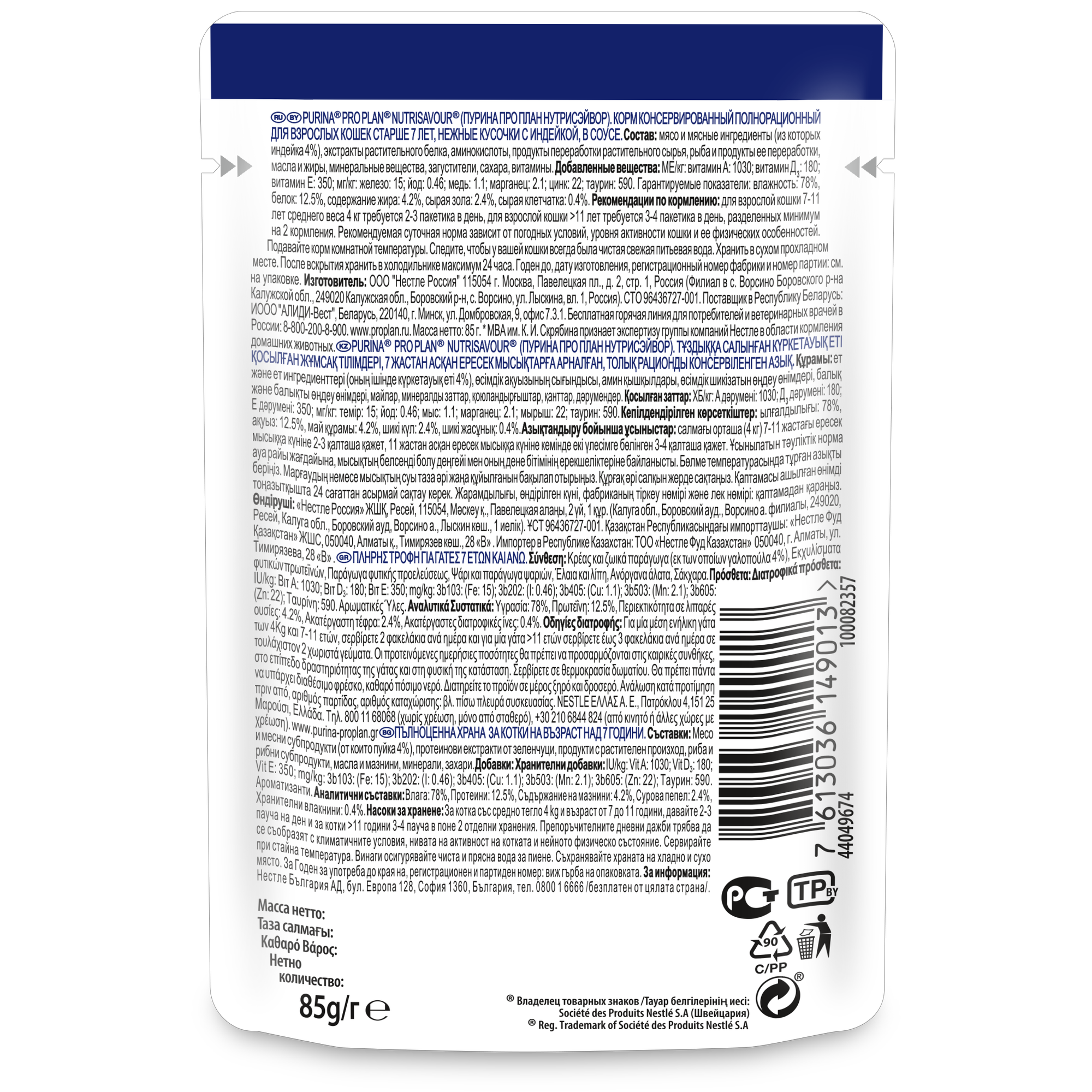Влажный корм для кошек Pro Plan Nutri Savour 85 г для взрослых старше 7 лет, кусочки с индейкой в соусе
