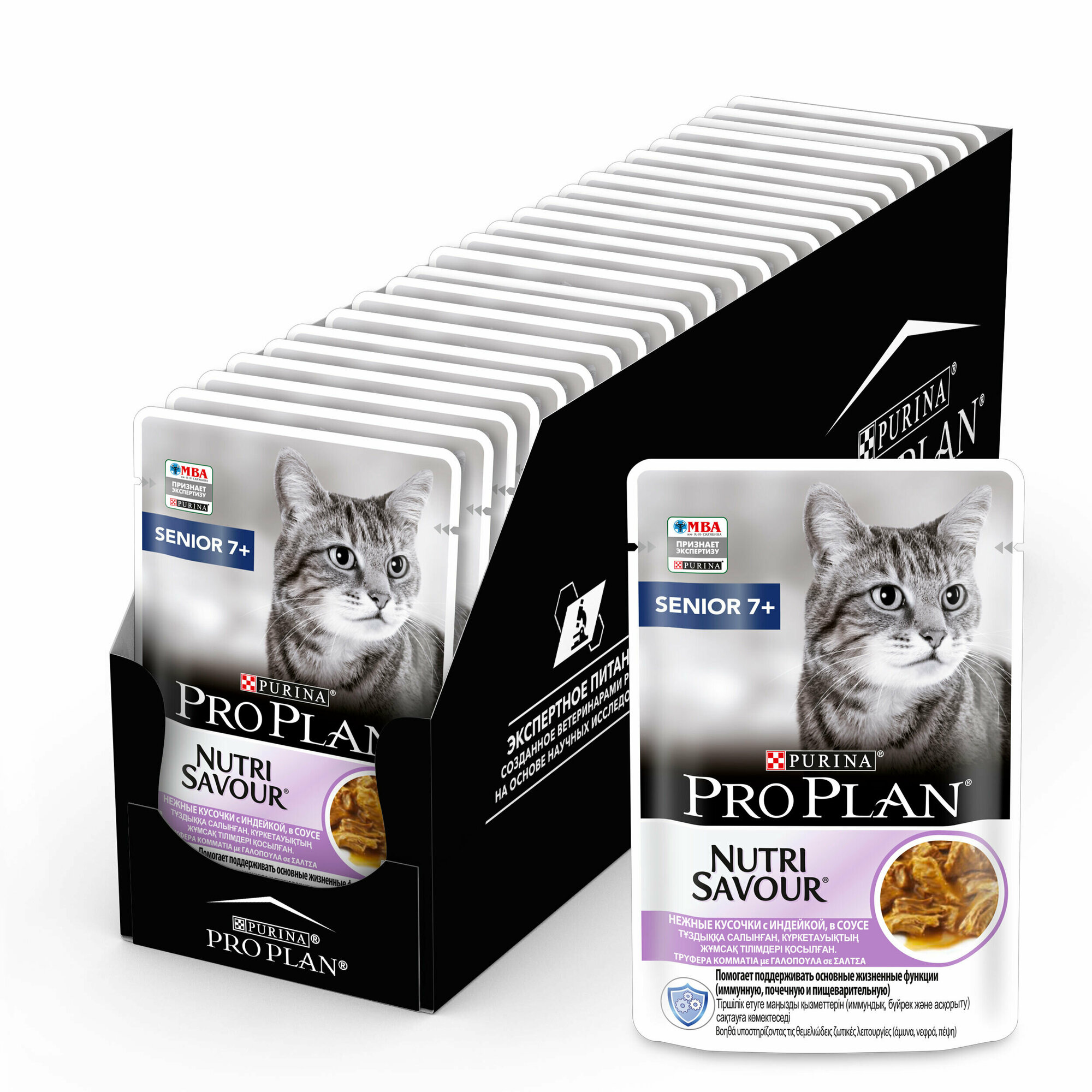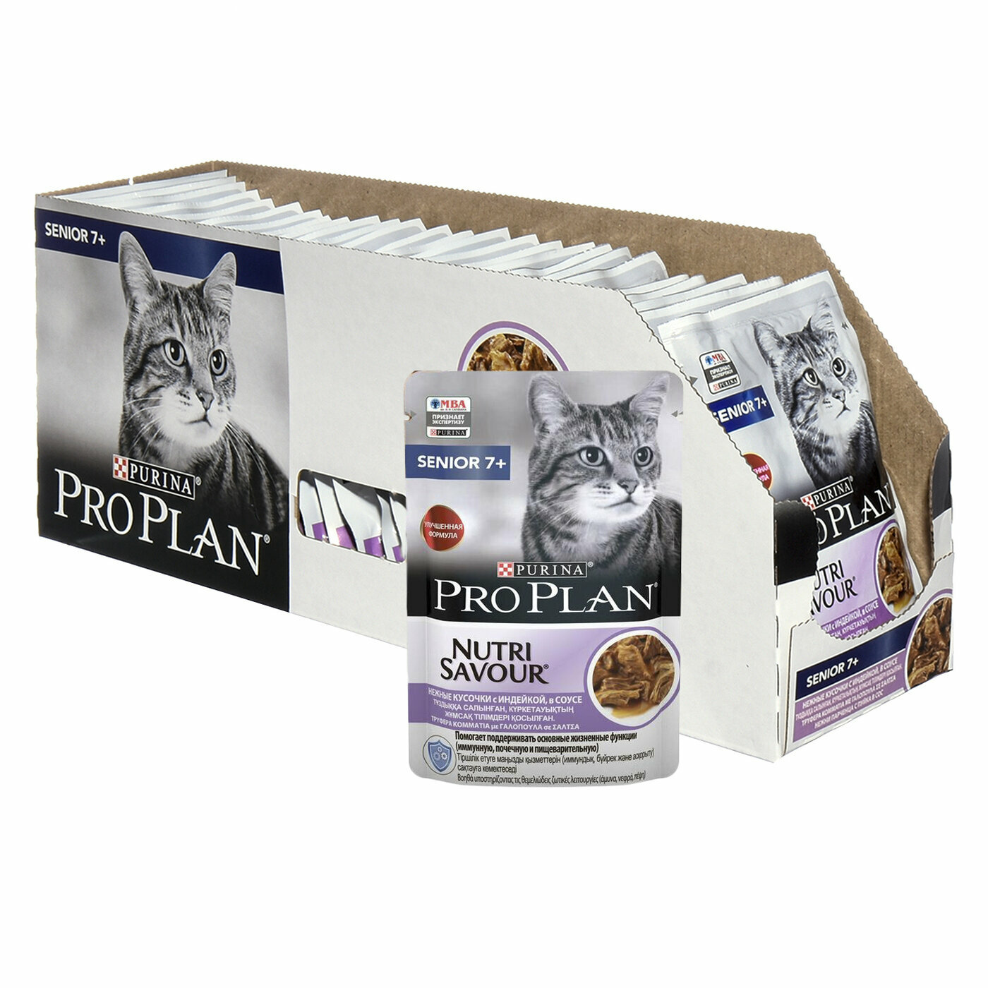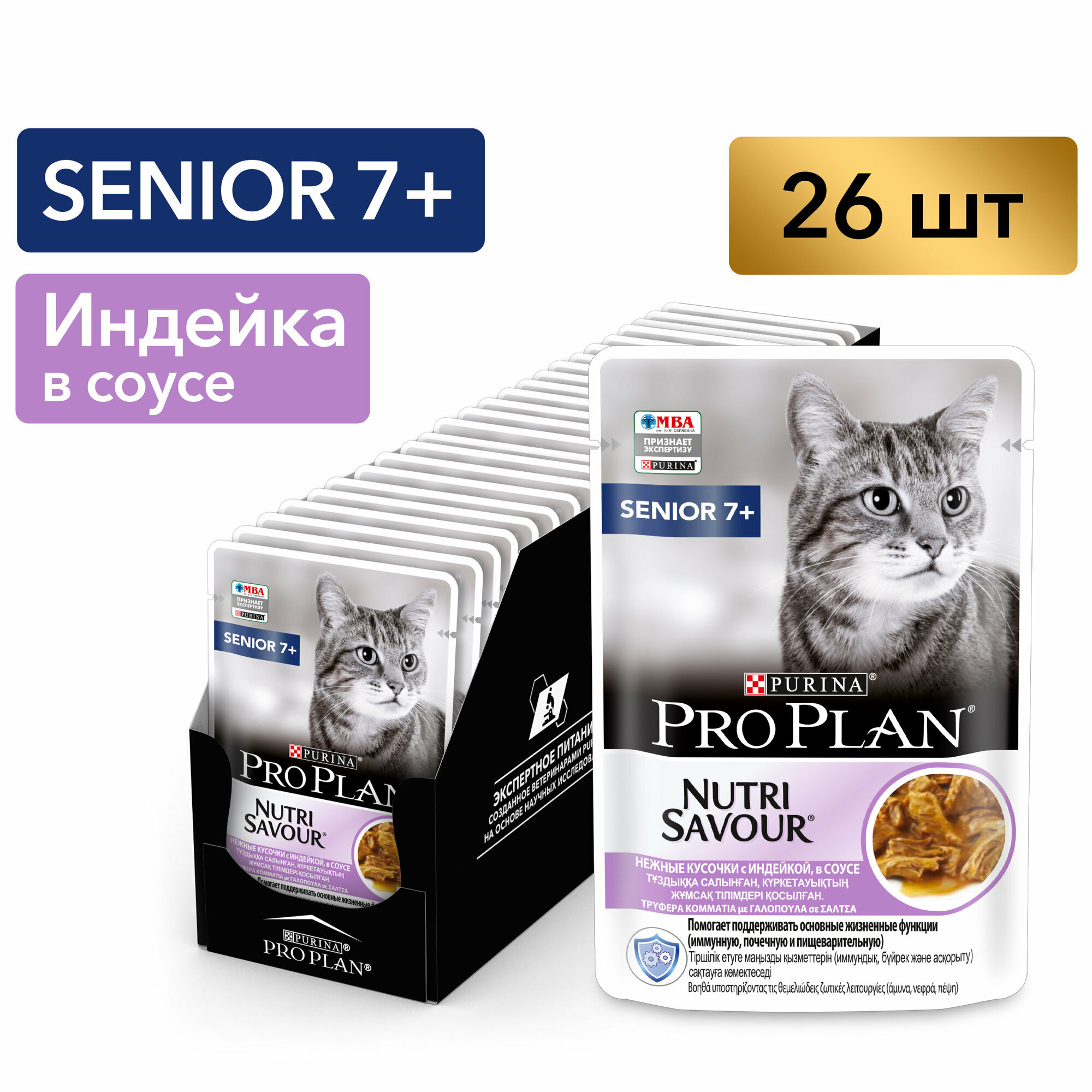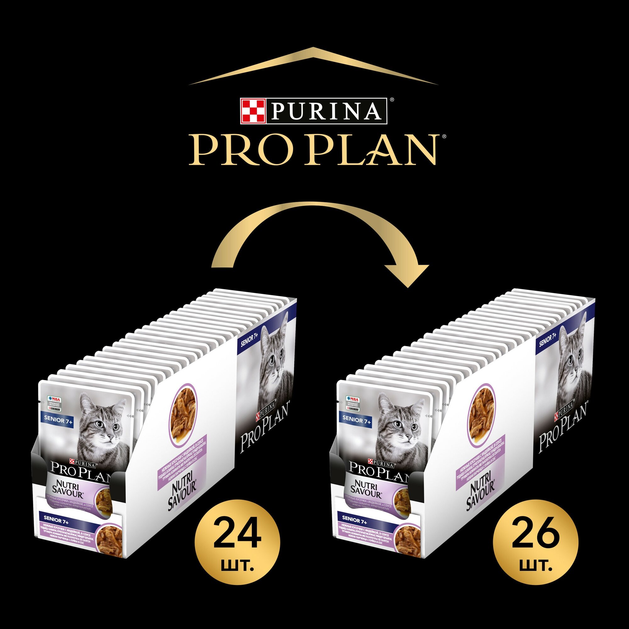 Влажный корм для пожилых кошек старше 7 лет Pro Plan Nutrisavour, с индейкой 26шт. х 85 г (кусочки в соусе)