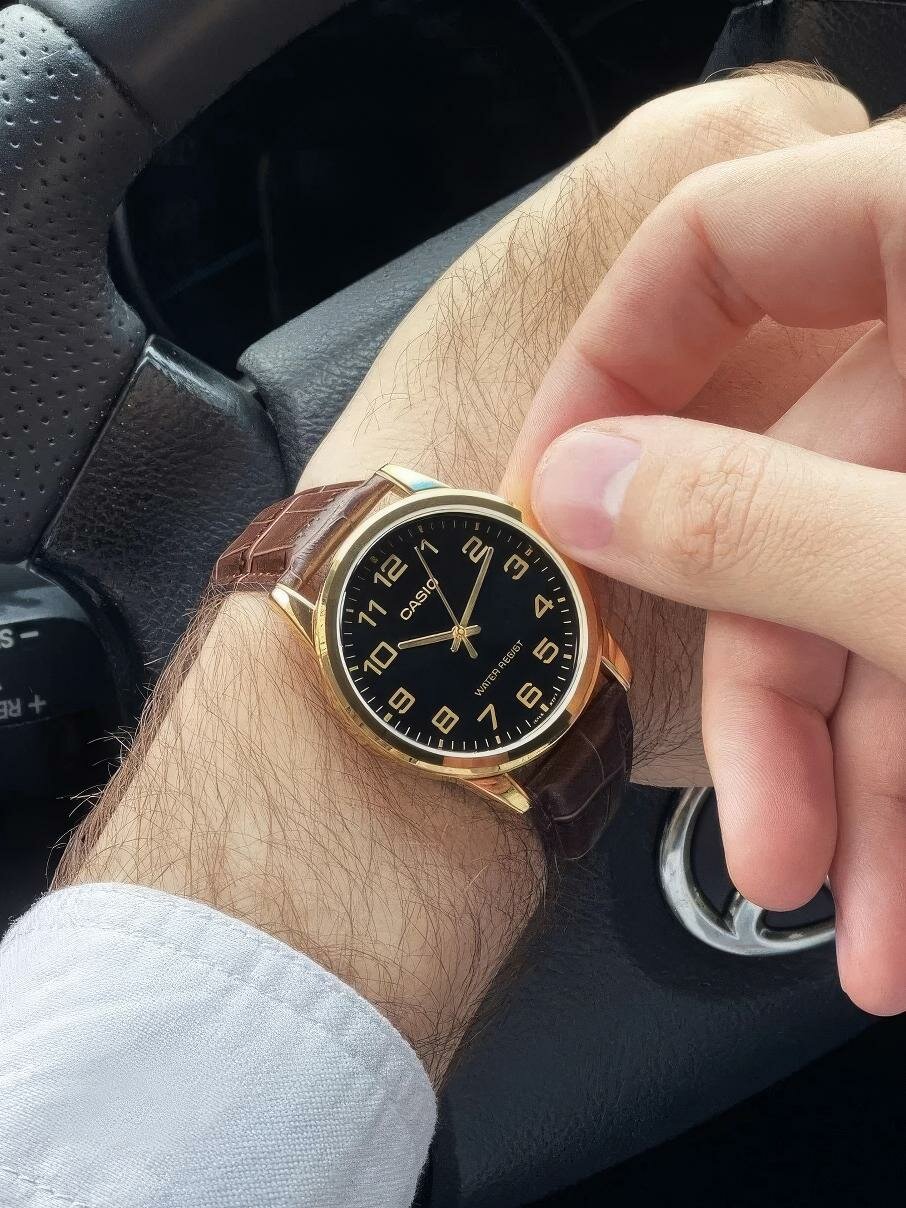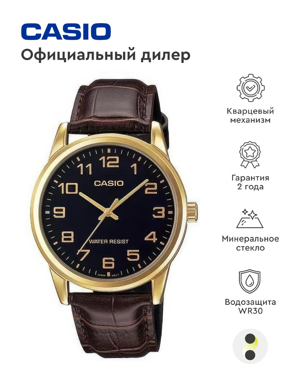 Наручные часы CASIO MTP-V001GL-1B, черный, золотой