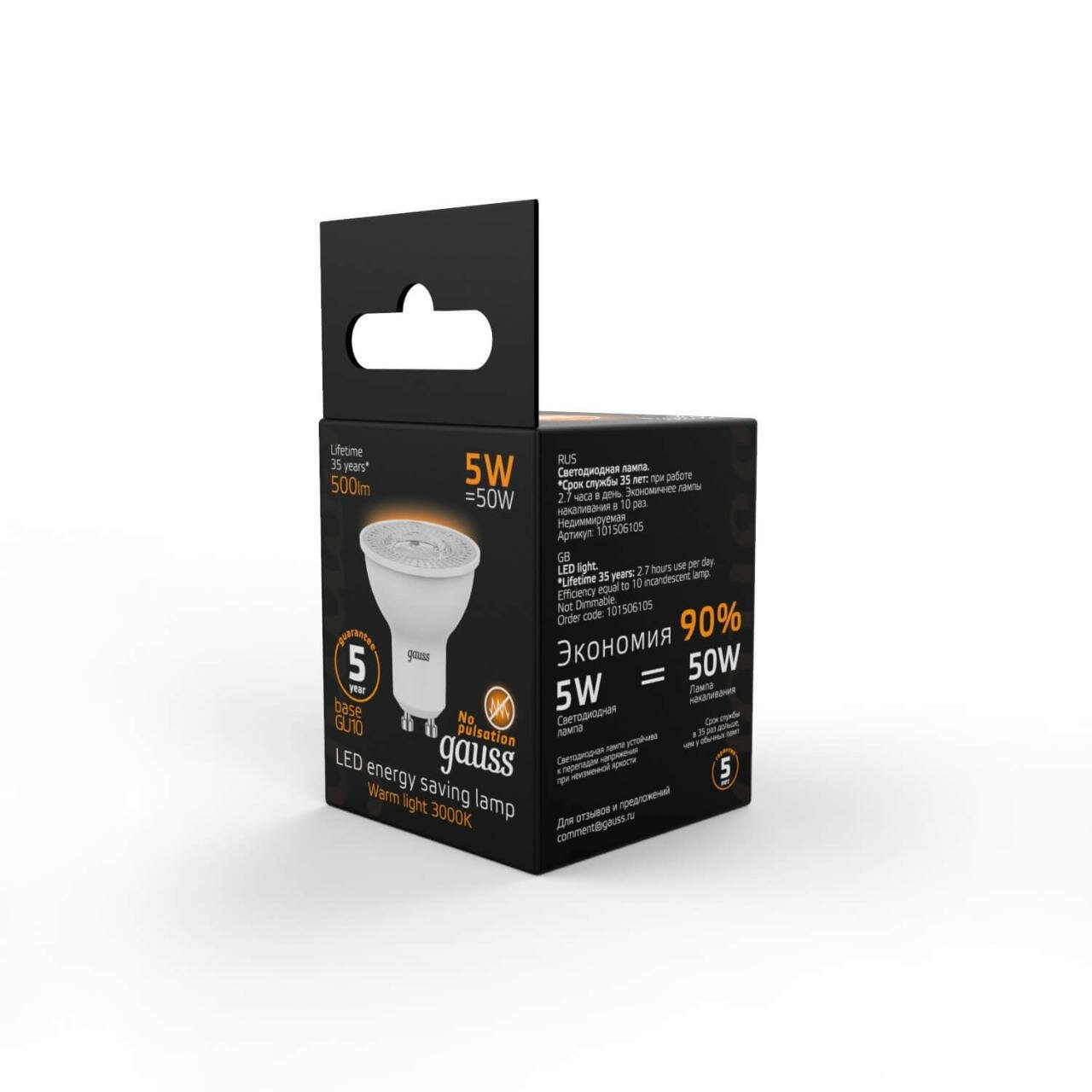 Купить Лампа светодиодная Gauss GU10 5W 3000K матовая 101506105
