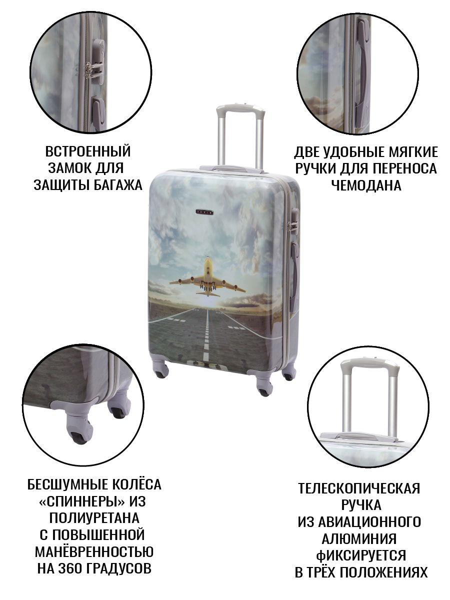 Чемодан на колесах дорожный средний багаж для путешествий s+ TEVIN размер С+ 60 см 52 л легкий 2.6 кг прочный поликарбонат с изображением