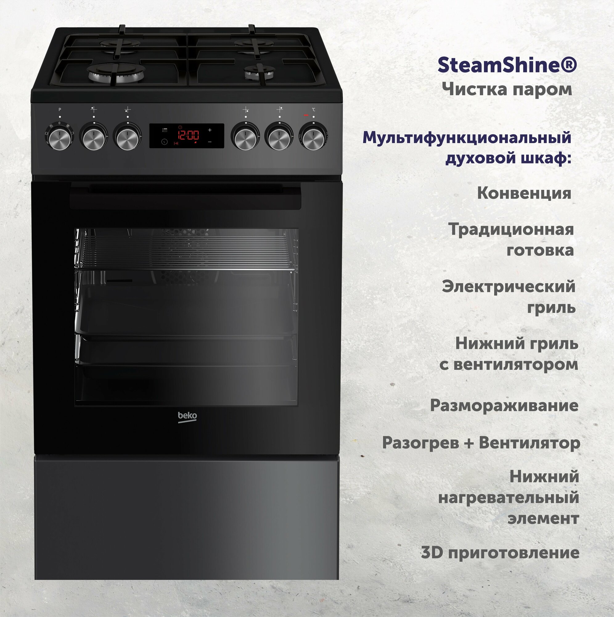 СохранитьГазовая плита Beko FSM52330DAO, электрическая духовка, стеклянная крышка, чугун, антрацит [7738987652] интересное: