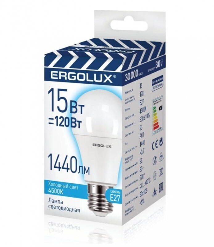 (Эл.лампа светодиодная ЛОН 15Вт Е27 4500К 220-240В, промо), ERGOLUX LED-A60-15W-E27-4K (1 шт.)