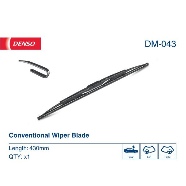 Щетка стеклоочистителя Denso 430мм (17") каркасная, летняя, с графитовым напылением, крепления J-Hook, Bayonet, 1 шт, арт. DM-043