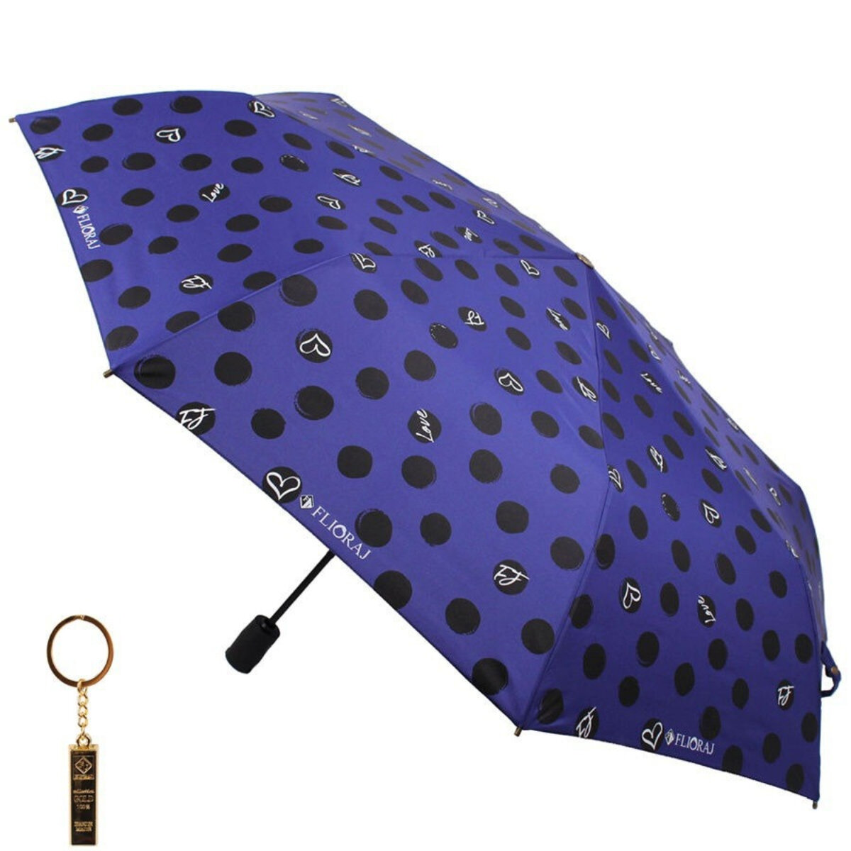 Купить Зонт женский Flioraj Синий 3 сложения Автомат Антиветер с брелоком 16052 FJ