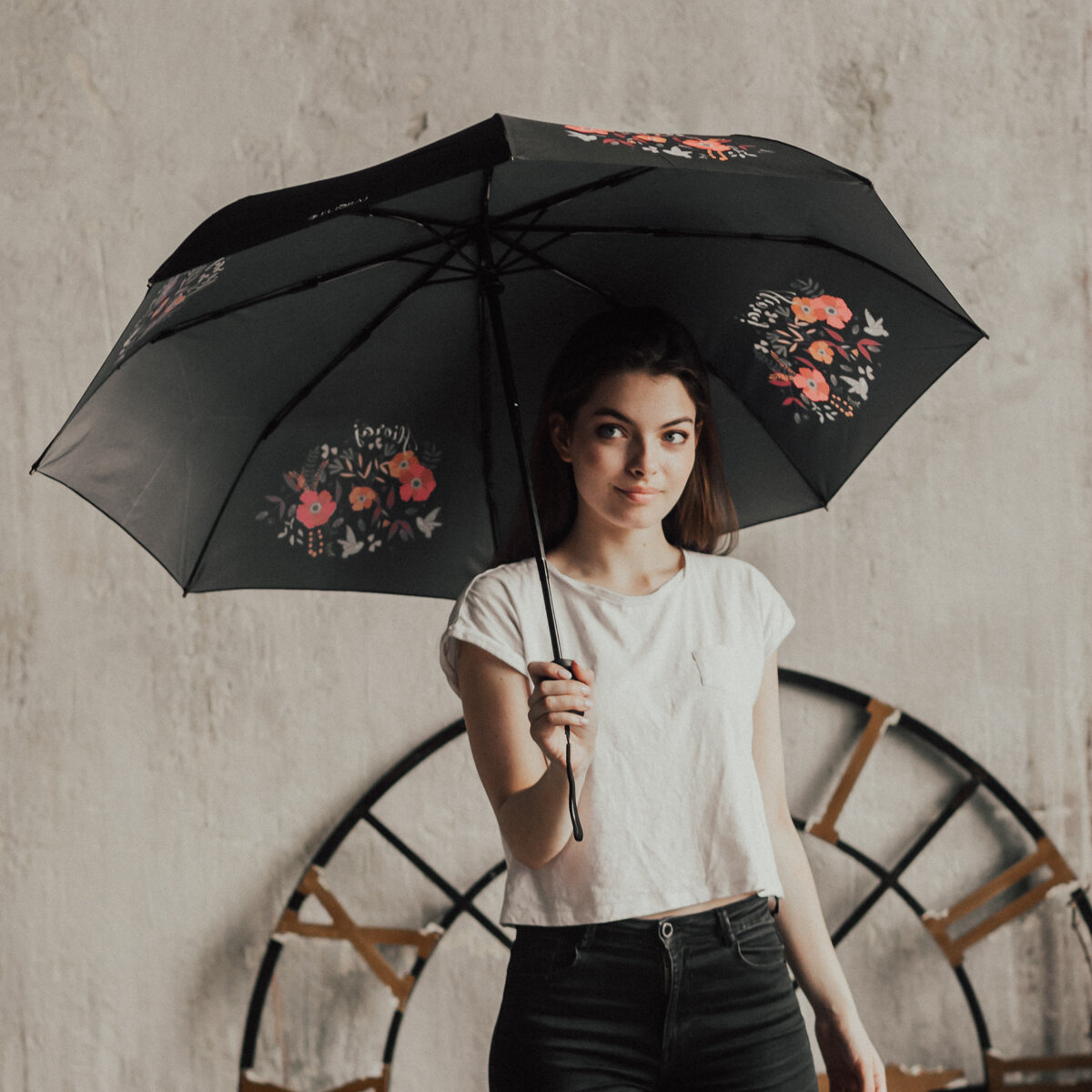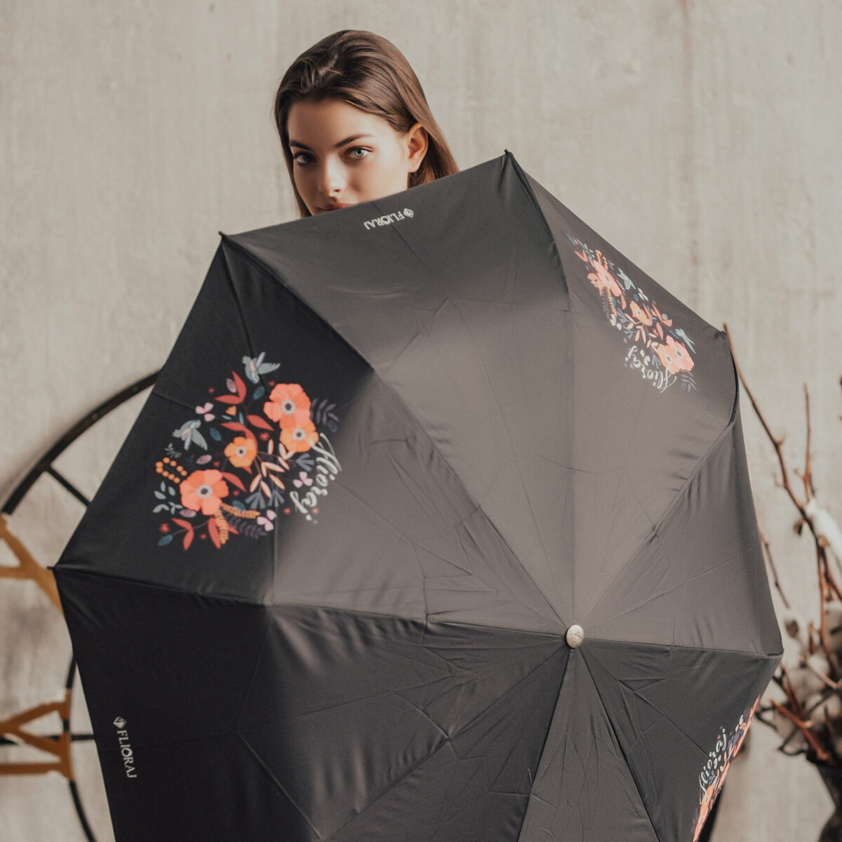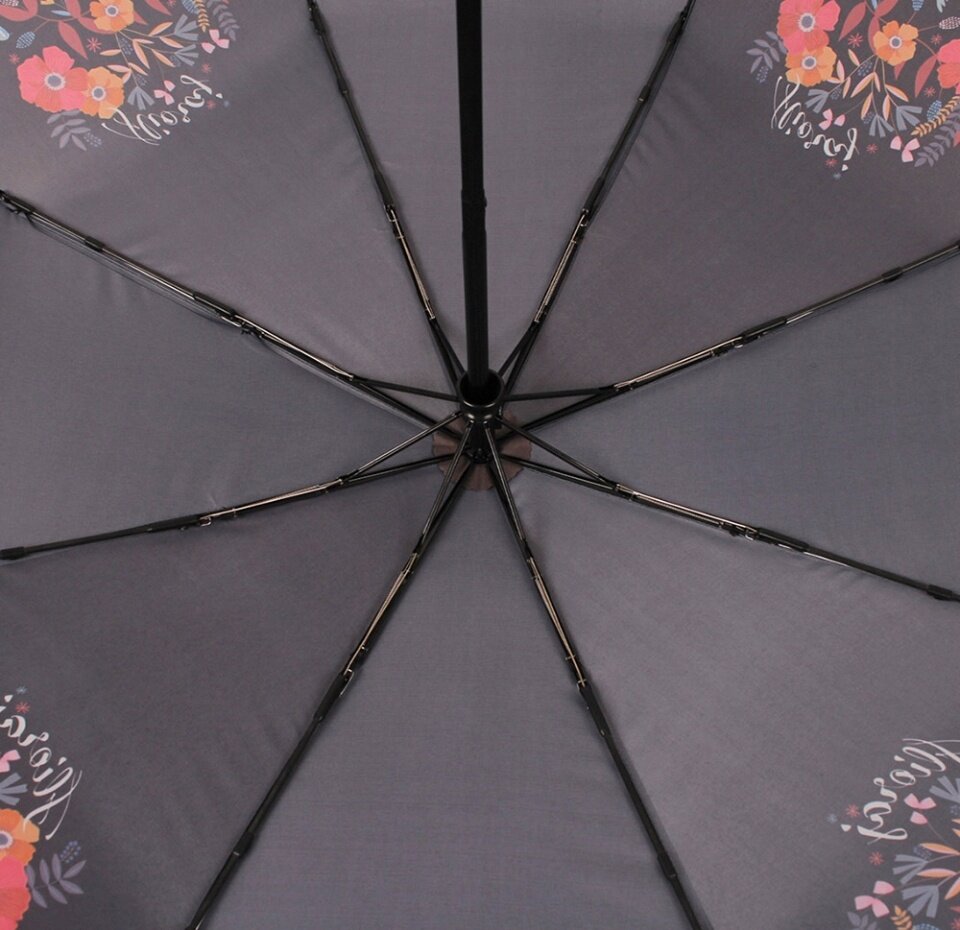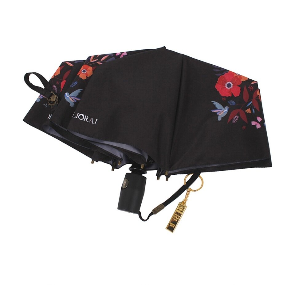 Купить Зонт женский Flioraj Чёрный 3 сложения Автомат Антиветер с брелоком 16091 FJ