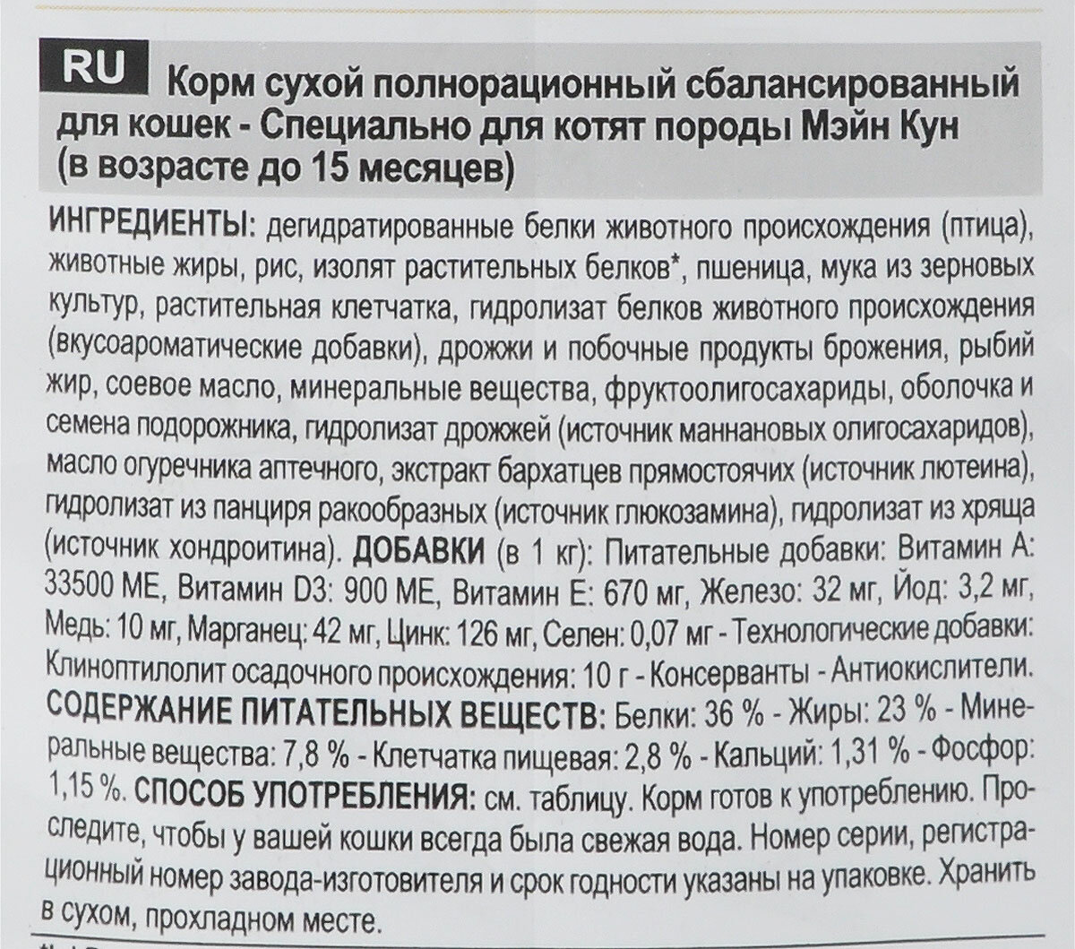 | Отзыв: | Отличный сбалансированный корм для котят породы Мейн Кун |
