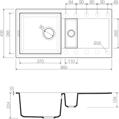 | Плюсы: | Двусторонняя, можно крутить крыло в нужную вам сторону (справа или слева), несколько установочных мест под кран, второй отсек для мытья овощей-фруктов, там же можно поставить измельчитель. |