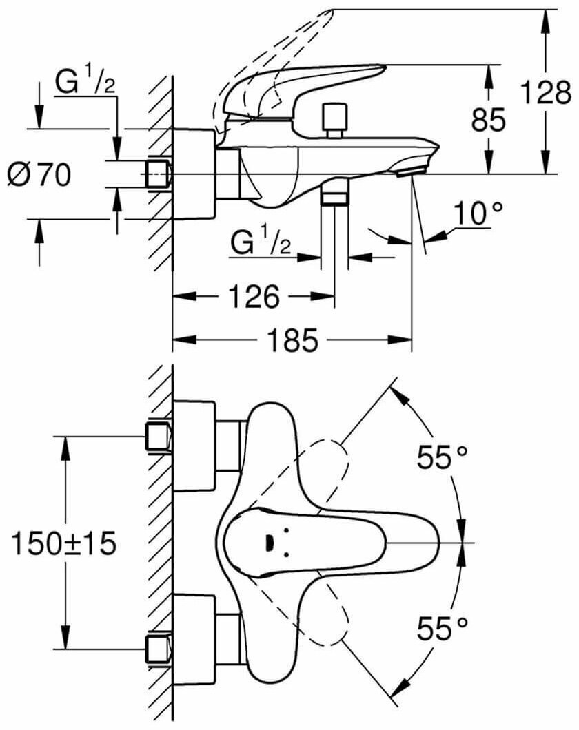 Смеситель для ванны GROHE Eurostyle, хром (23726003)