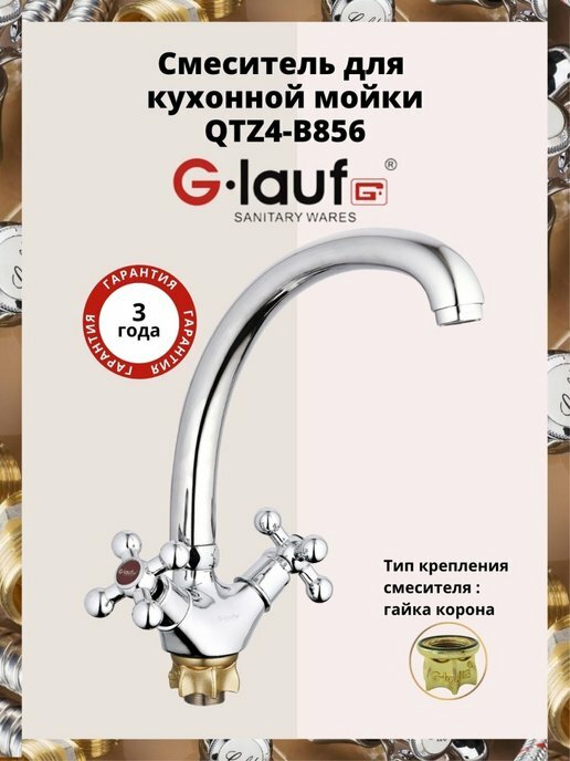 G-lauf QTZ4-B856, Смеситель для кухонной мойки керамический картридж, гайка, крест)