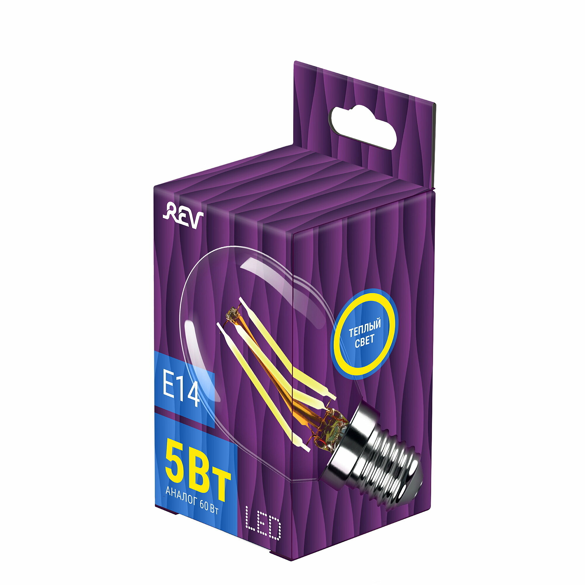 32357 0 Лампа filament, шар, G45, теплый свет, 5Вт, E14, 2700K, 515Лм, 32357 0, REV, цена за 1 шт.