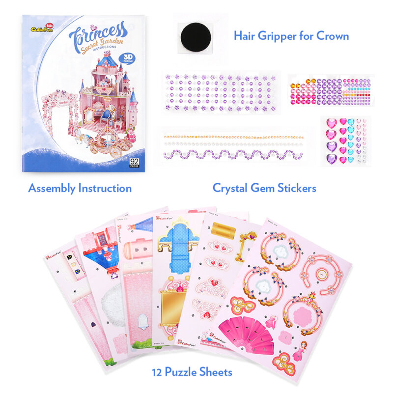 Набор для творчества CubicFun 3D пазл Замок принцессы с садом с наклейками и стразами 92 детали E1623h