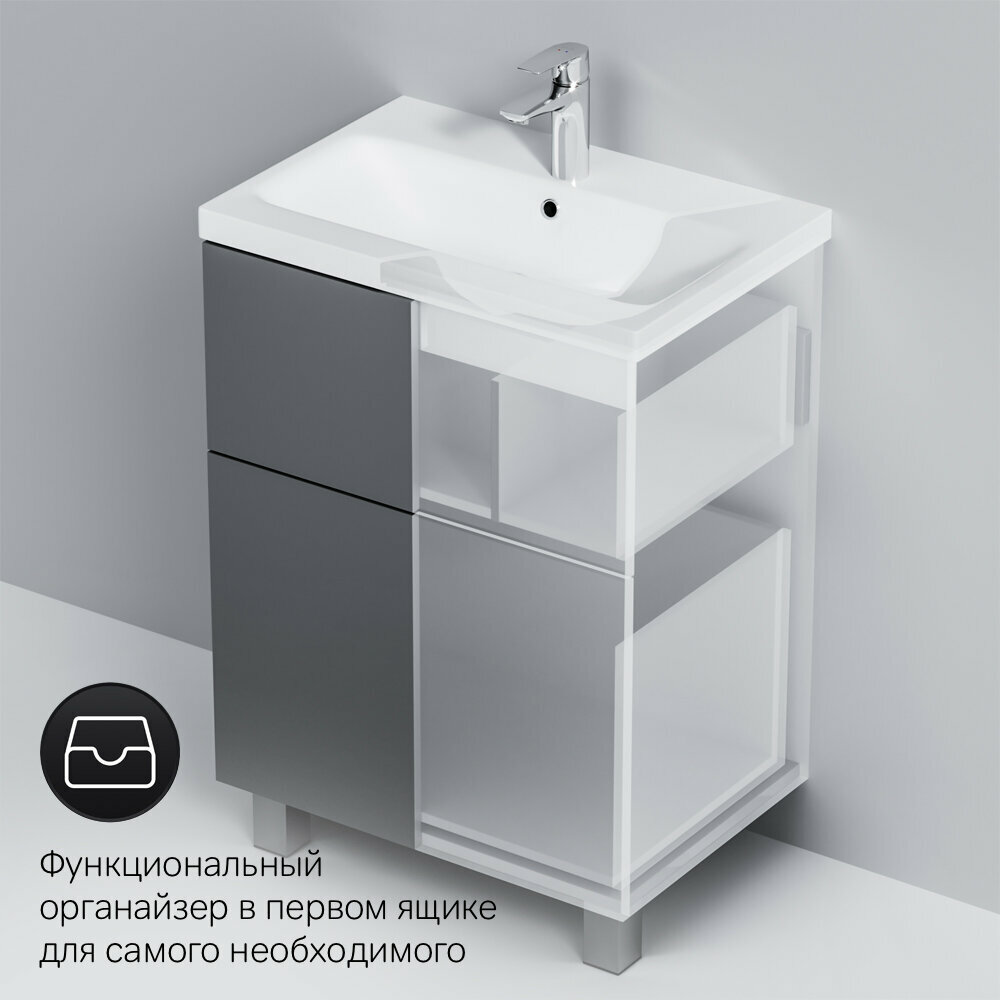 Тумба для комплекта AM.PM Gem 60 графит матовый, напольная, с 2 ящиками