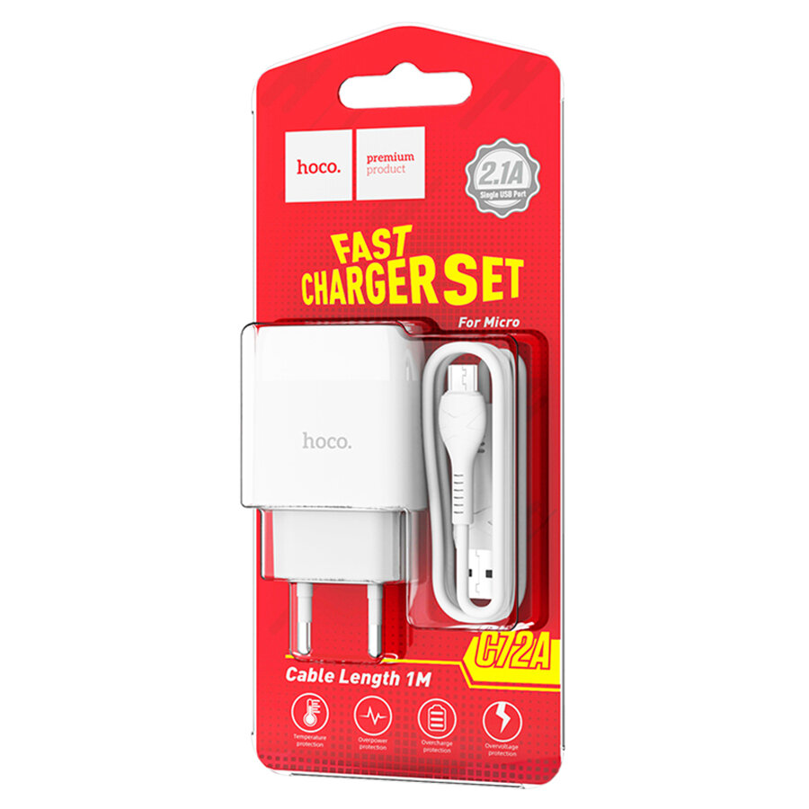 HOCO HC-13001 C72A Сетевое ЗУ + Кабель Micro 1m 1 USB Выход: 10.5W White