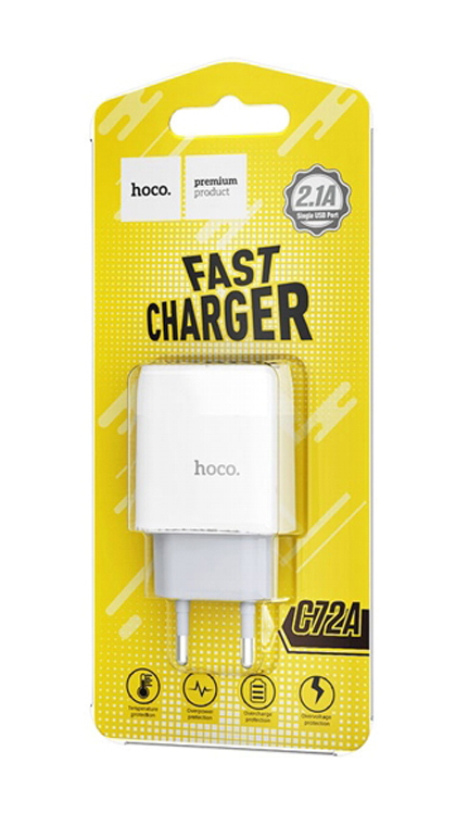 Сетевое зарядное устройство Hoco C72A, 1 USB, 2.1 А, белый