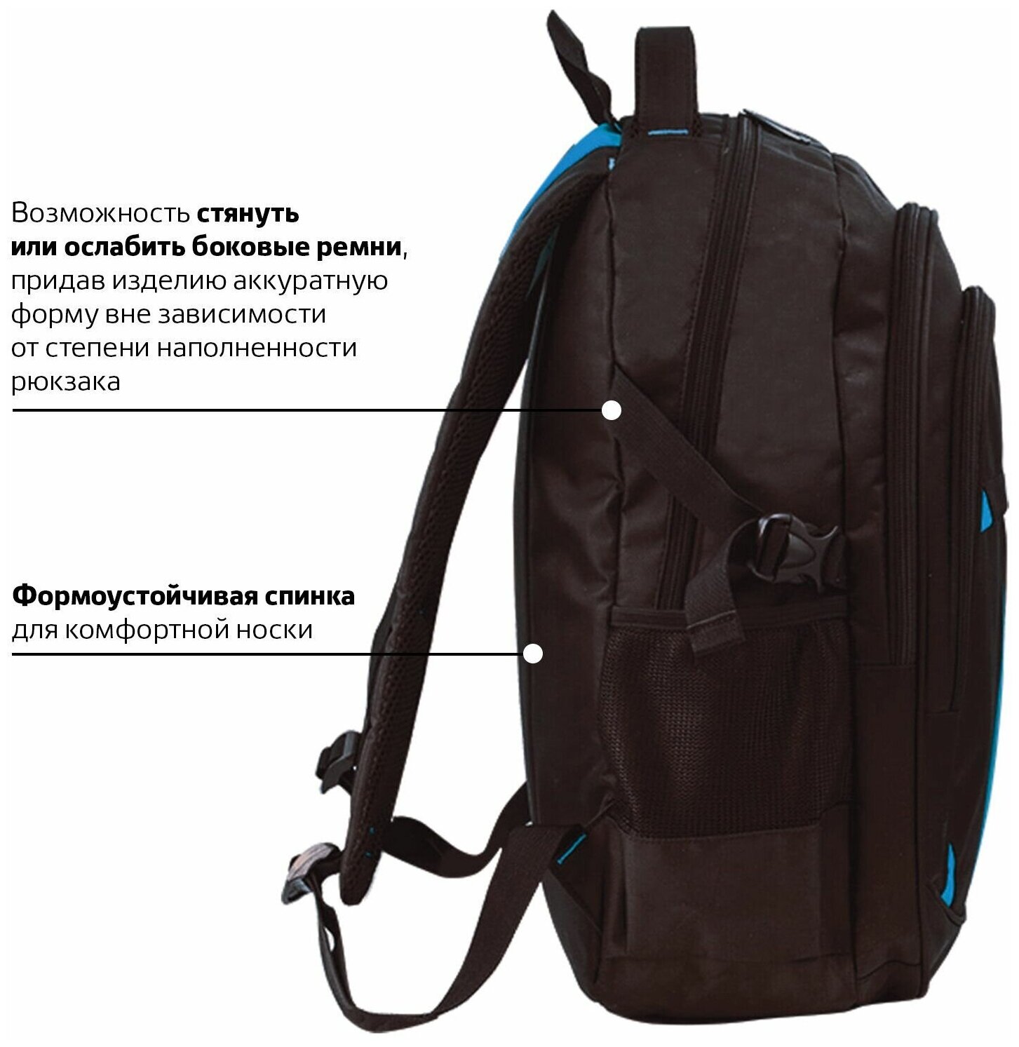 Рюкзак Brauberg Titanium для старшеклассников/студентов/молодежи, синие вставки, 45х28х18 см, 224734 .