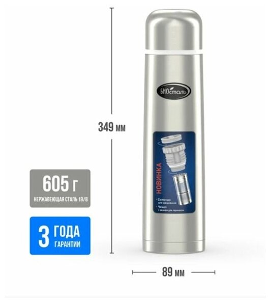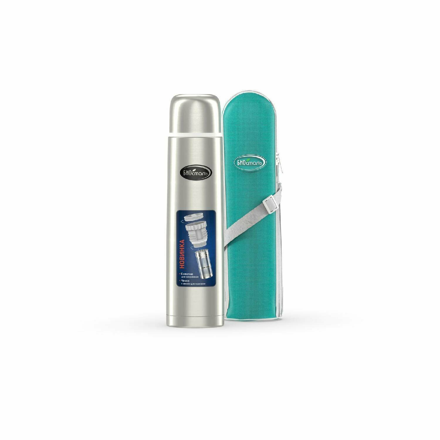 Термос классический Вакуумный с узкой горловиной, пробка-контейнер с ситичком, чехол Биосталь/Biost (1),NB-1000BZ